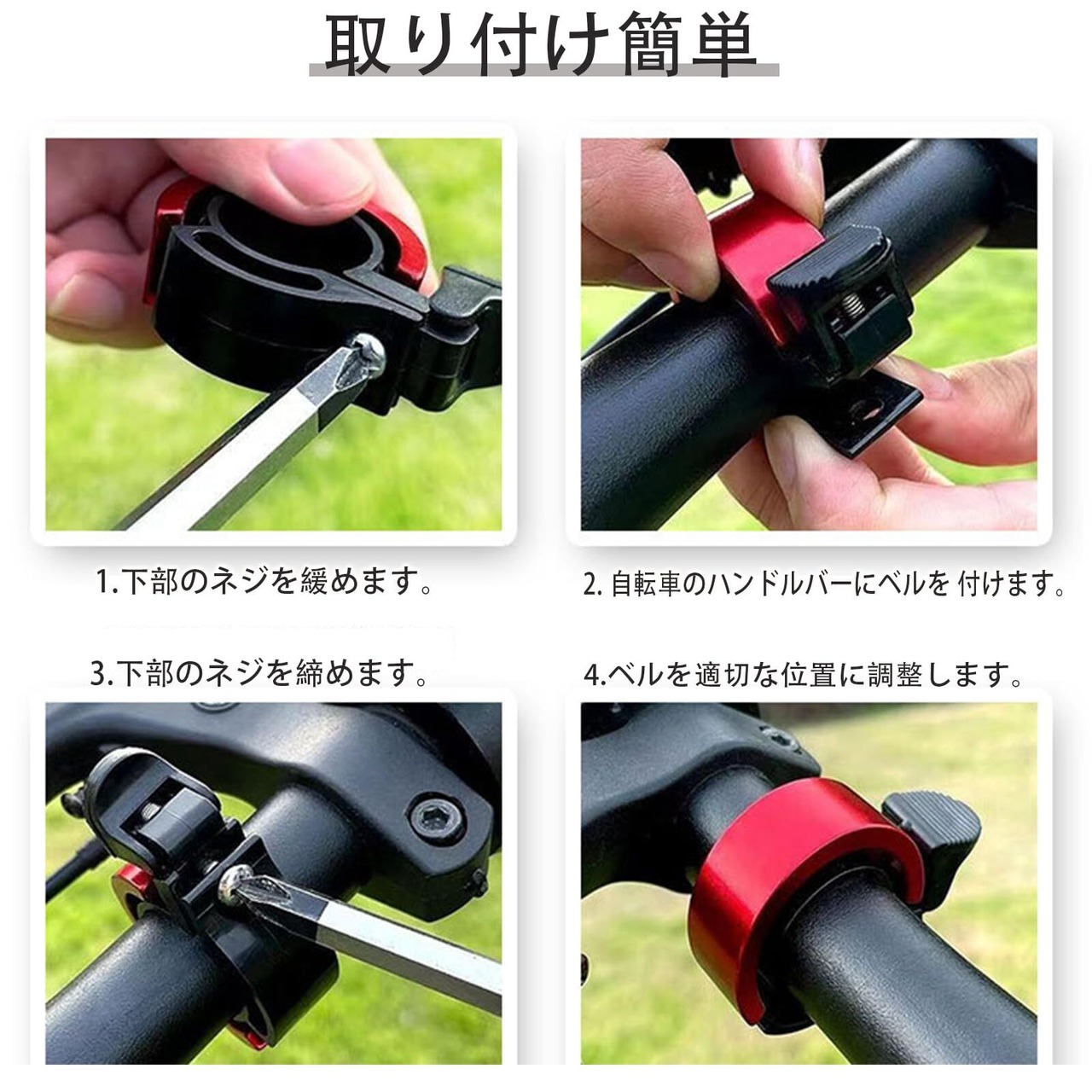 自転車 ベル 軽量 ダブルベル 大音量 パイプ径 22mm アルミニウム合金 防錆 隠れる式