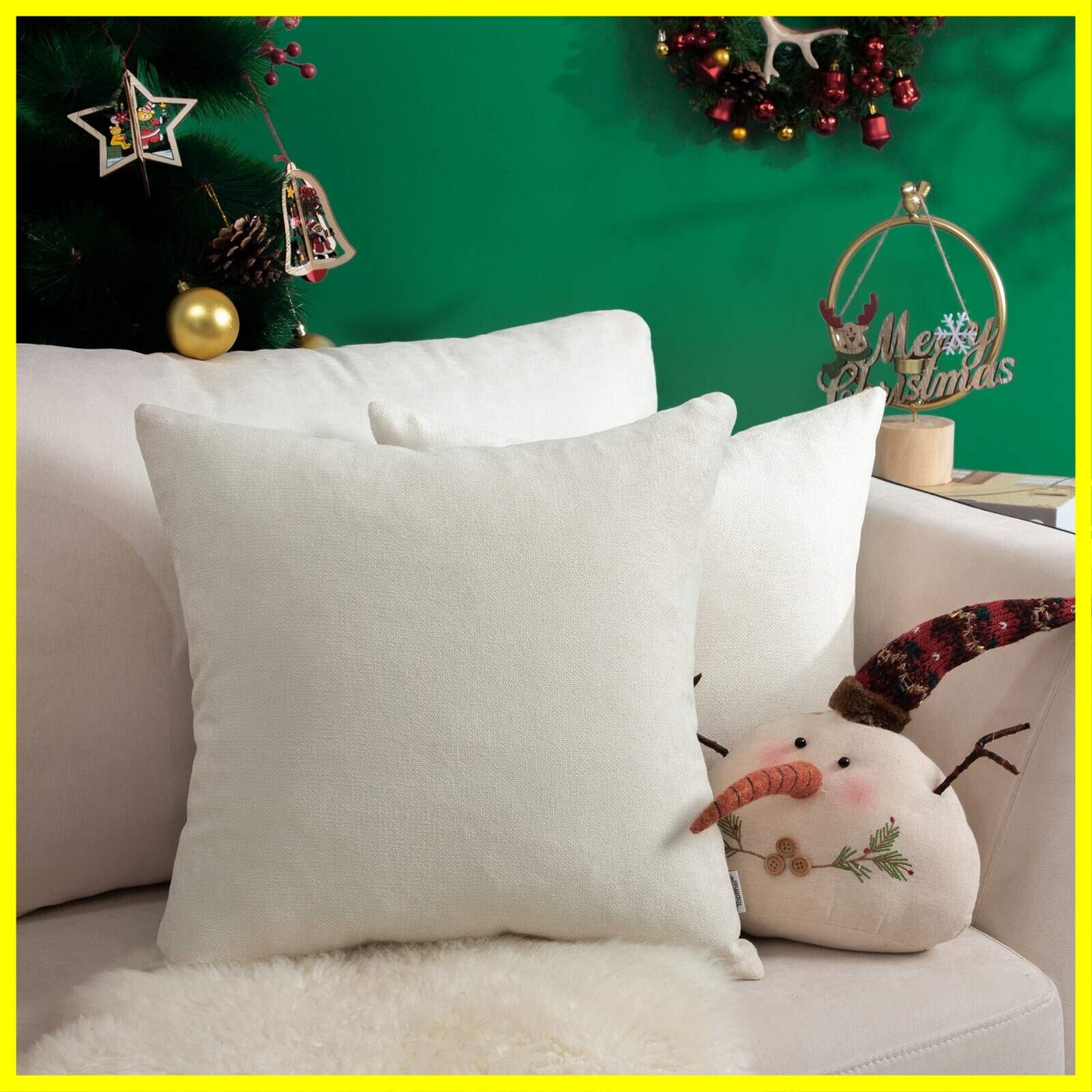 Topfinel クッションカバー リネンっぽい 50×50cm 北欧 おしゃれ 綿麻 無地 ソファ背当て 装飾枕カバー 座布団カバー ホワイト 2枚セット(全10色)