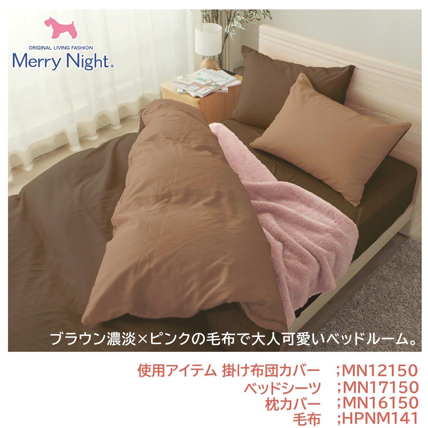 メリーナイト 掛布団カバー シャンブレー調 濃淡無地カラー ブラウン シングルロング 約150×210cm リバーシブル仕様 両面使える 内側スナップボタン8カ所付き 着脱簡単 綿混素材 速乾 シワになりにくい 洗える 衛生 清潔 オールシーズン MN12150-93