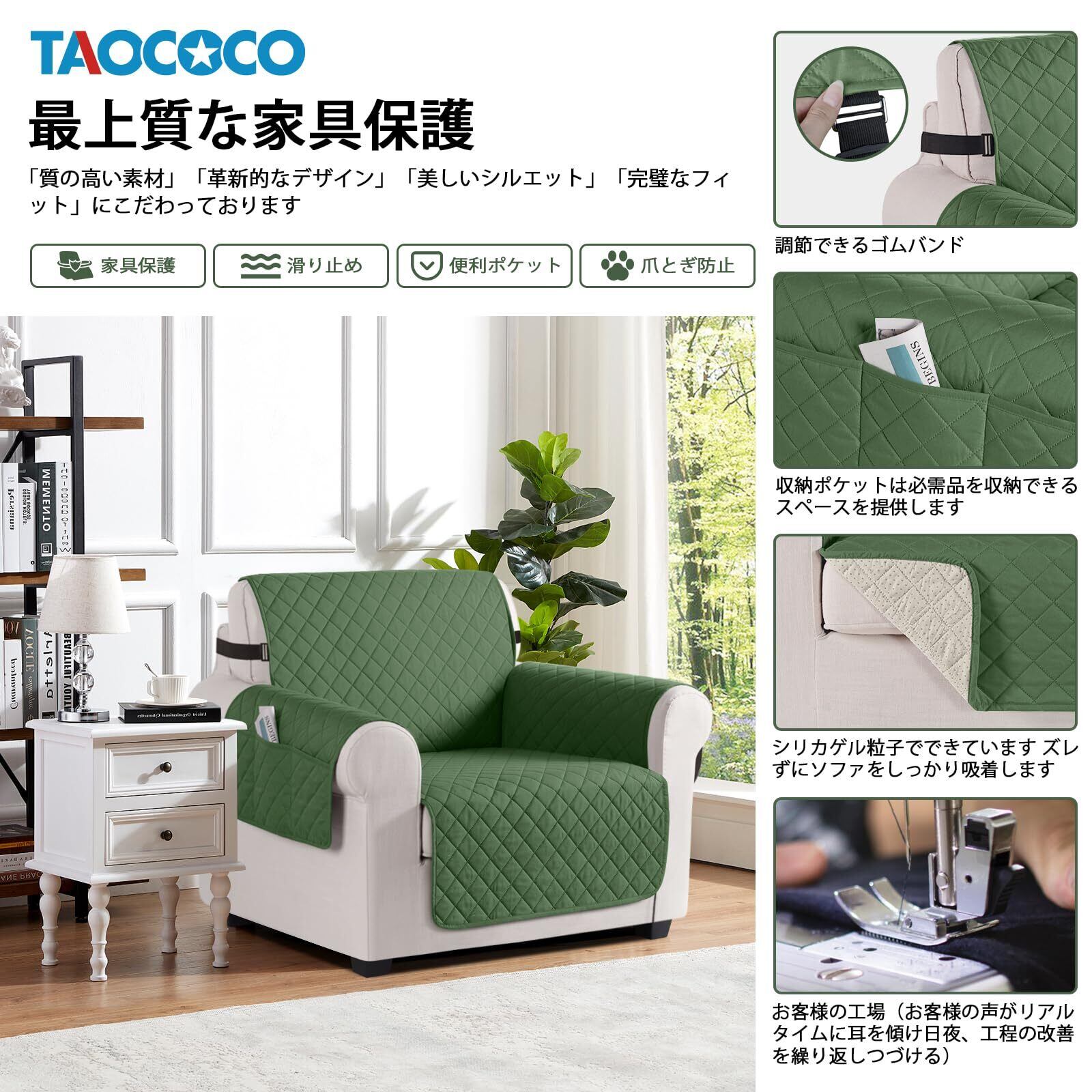 TAOCOCO ソファカバー 全面防水 ソファーシート 犬猫対策 毛髪不粘着 滑り止め 1人2人3人掛け 肘付き 替えソファカバー 防塵 汚れ防止 傷防止 爪とぎ防止 マルチカバー 四季適用 撥水加工 丸洗い可能 (アルパイングリーン色, 1人掛け)
