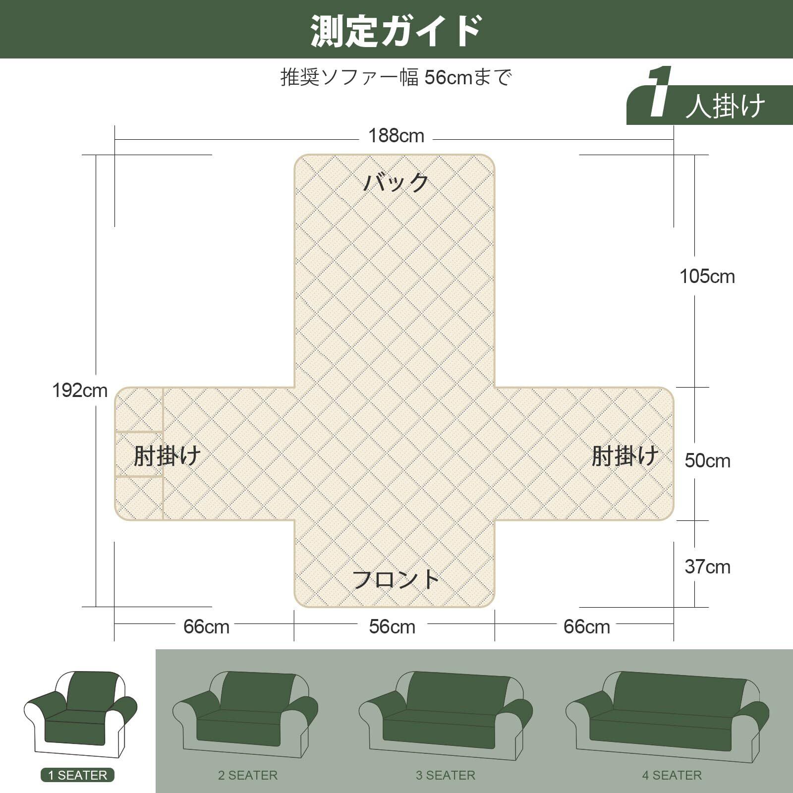 【サイズ】TAOCOCO 防水 ソファカバーは一人掛け:面積は192*188cm、二人掛け:面積は192*252cm、三人掛け:面積は192*303cm。※人工測量なので、多少の誤差がある場合がございます。ご購入前に、ソファーのサイズを測ってから、参考サイズに合わせてください。必ずソファーのサイズを測ってください。