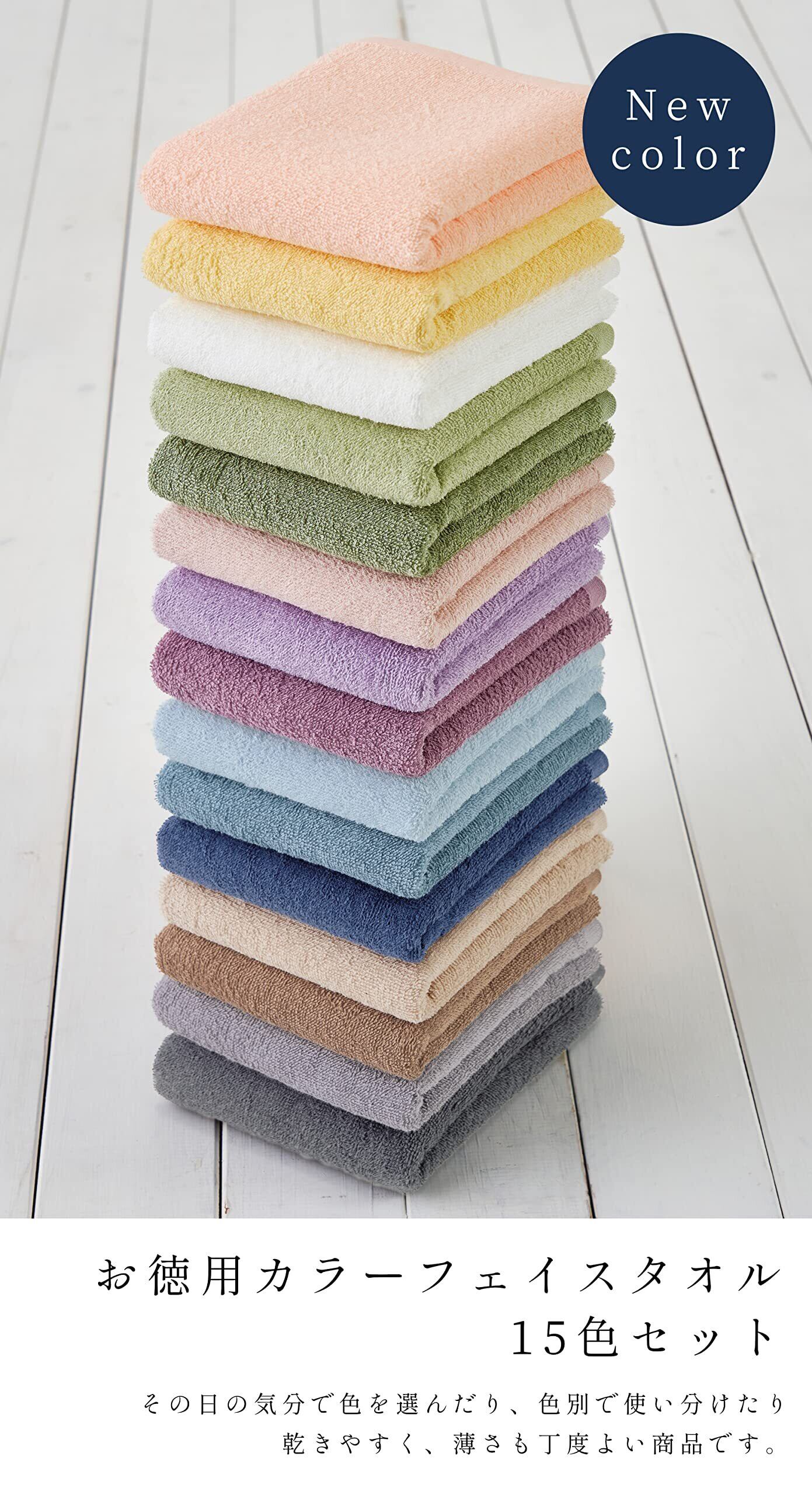 Kosugizen フェイスタオル お徳用カラータオル 15色各1枚入 34×80㎝ 乾きやすい薄手タイプ まとめてお得 15枚セット ZGTF-750-15