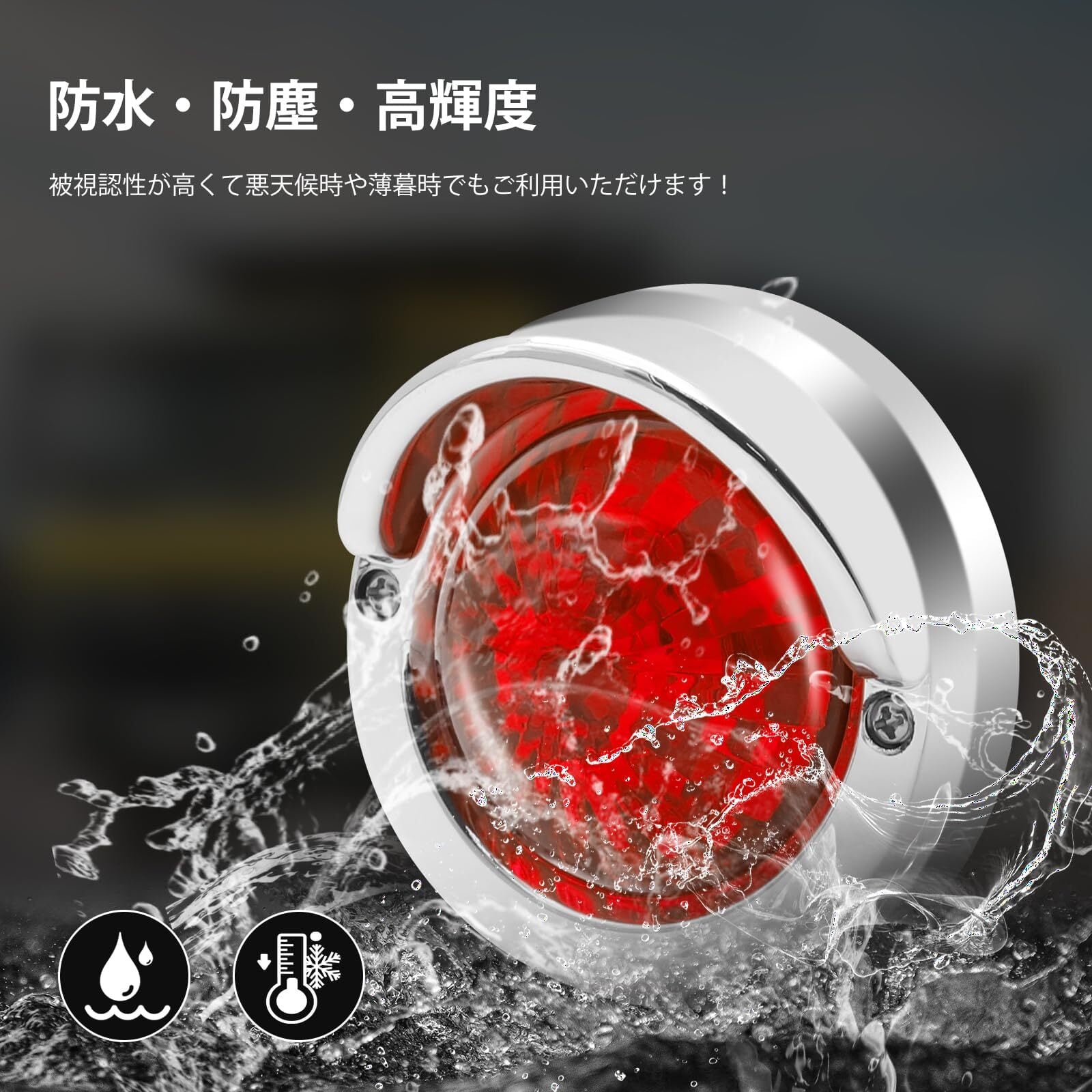 ✦【防水・防塵・耐熱・耐寒】防水加工もされており、大気中での色あせや腐食に強くなっています。そのため、悪天候の中利用し続けたとしても長期間耐久できます。こちらのマーカーランプはABS樹脂素材で作られていますので、光沢性に優れているだけでなく、耐熱性や耐寒性にも抜群!