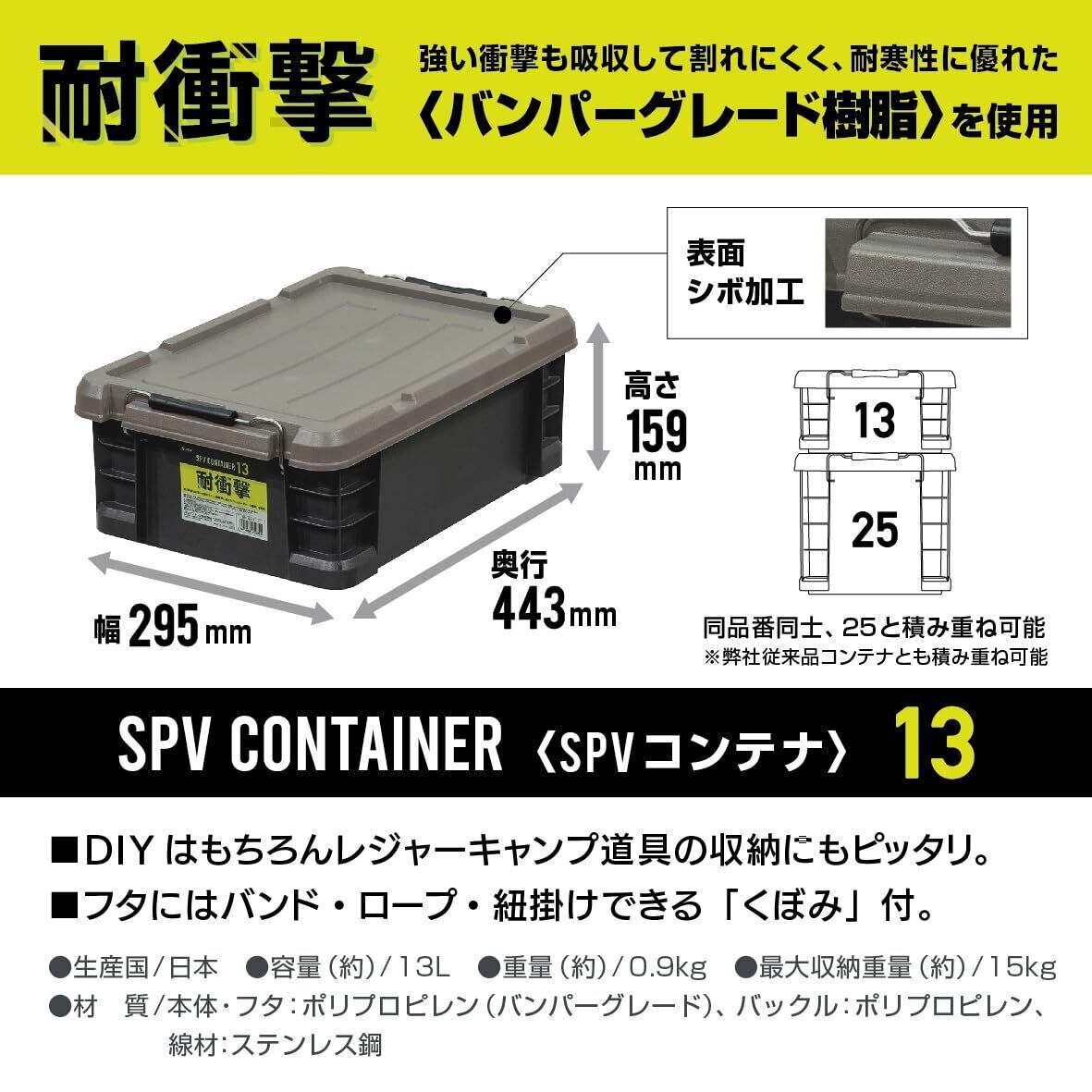 JEJアステージ 収納ボックス 日本製 アウトドア キャンプ DIY レジャー 積み重ね [SPV(耐衝撃) コンテナ 13] W295×D443×H159mm 10個セット