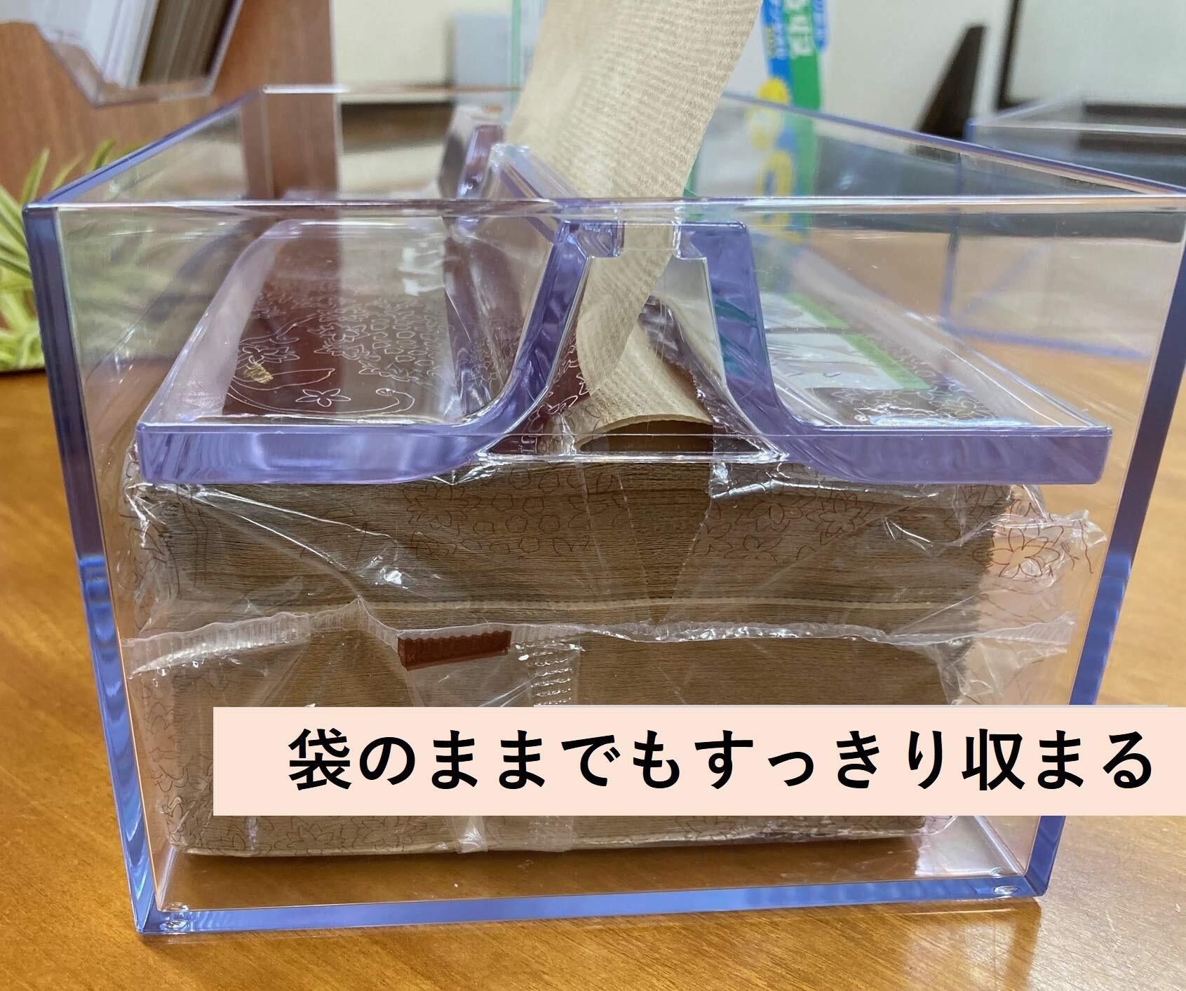 ペーパータオルがまだ残っている時でも継ぎ足ししやすいでしょう。どの角度からでも残量が分かるきれいなクリアケースです。