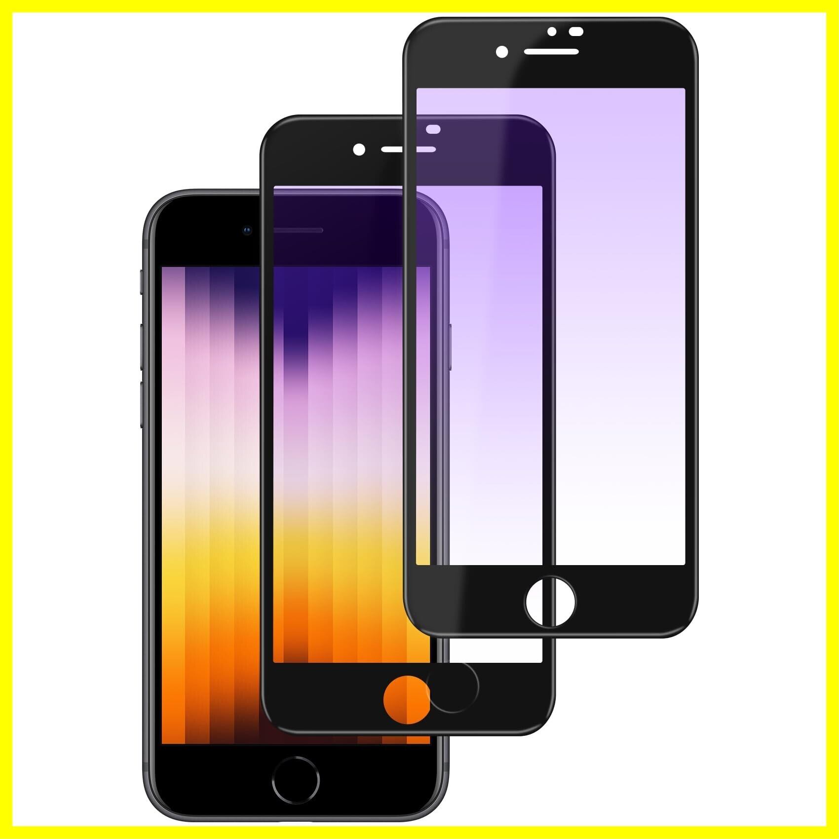 NIMASO ガラスフィルム iPhone SE 第3世代 iPhone SE2 8 7 用 ブルーライトカット 全面保護 フィルム【ガイド枠付き】【2枚セット】【ブラック】 NSP20A49