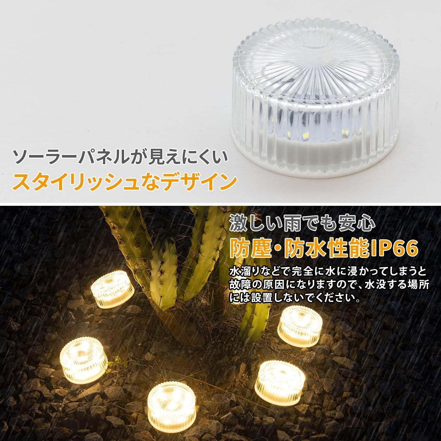 【仕様】本体サイズ:幅10.5×奥行10.5×高さ5.2cm/重量:0.34kg/素材:ガラス+HI PS/防塵防水性能:IP66/充電時間(目安):直射日光で約8-10時間/点灯時間(目安):フル充電で約6-8時間/LED:0.01W相当 LED9灯/充電池:1.2V 単4形 600mAh ニッケル水素 1本/カラー:ゴールド/数量:1個
