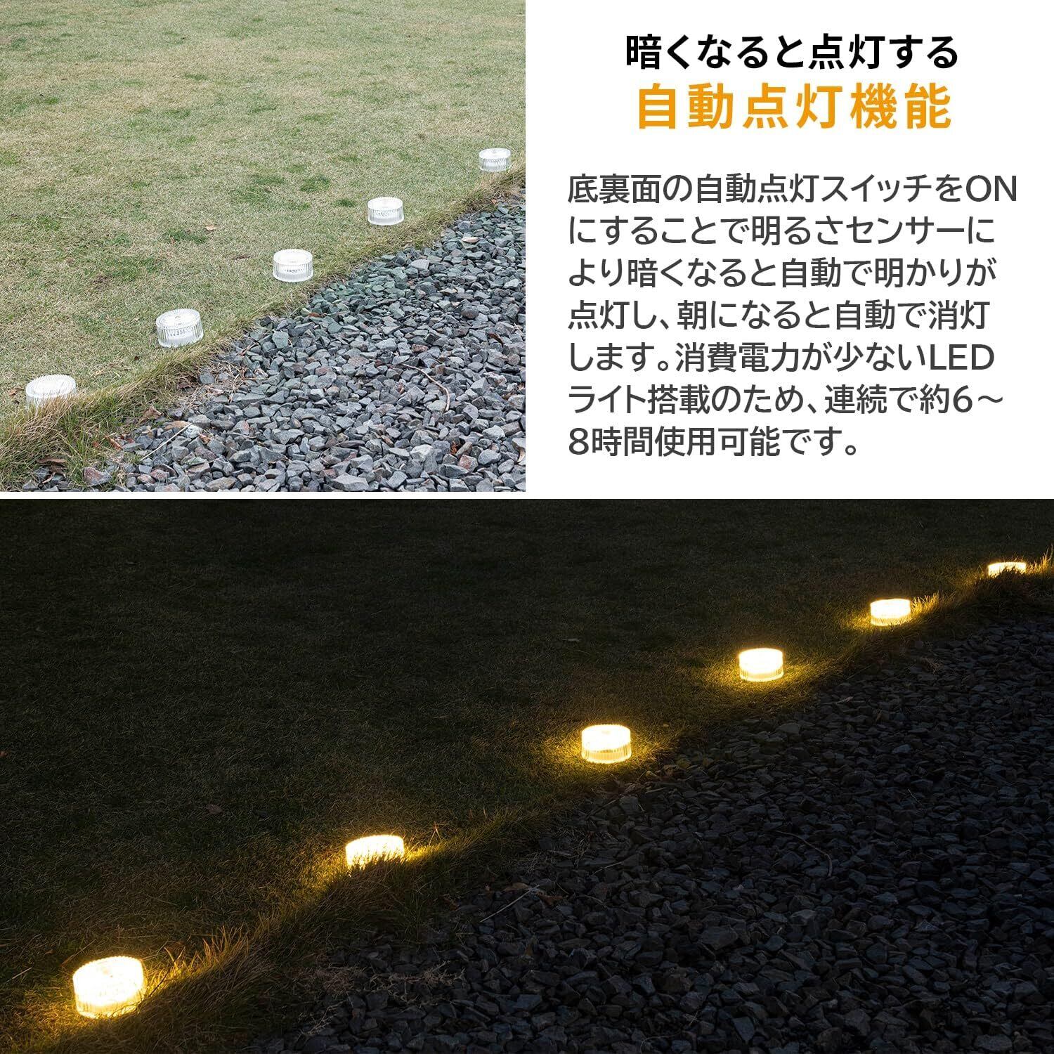 ●底裏面の自動点灯スイッチをONにしておくことでセンサーにより夜間、あたりが暗くなると自動で点灯します。
