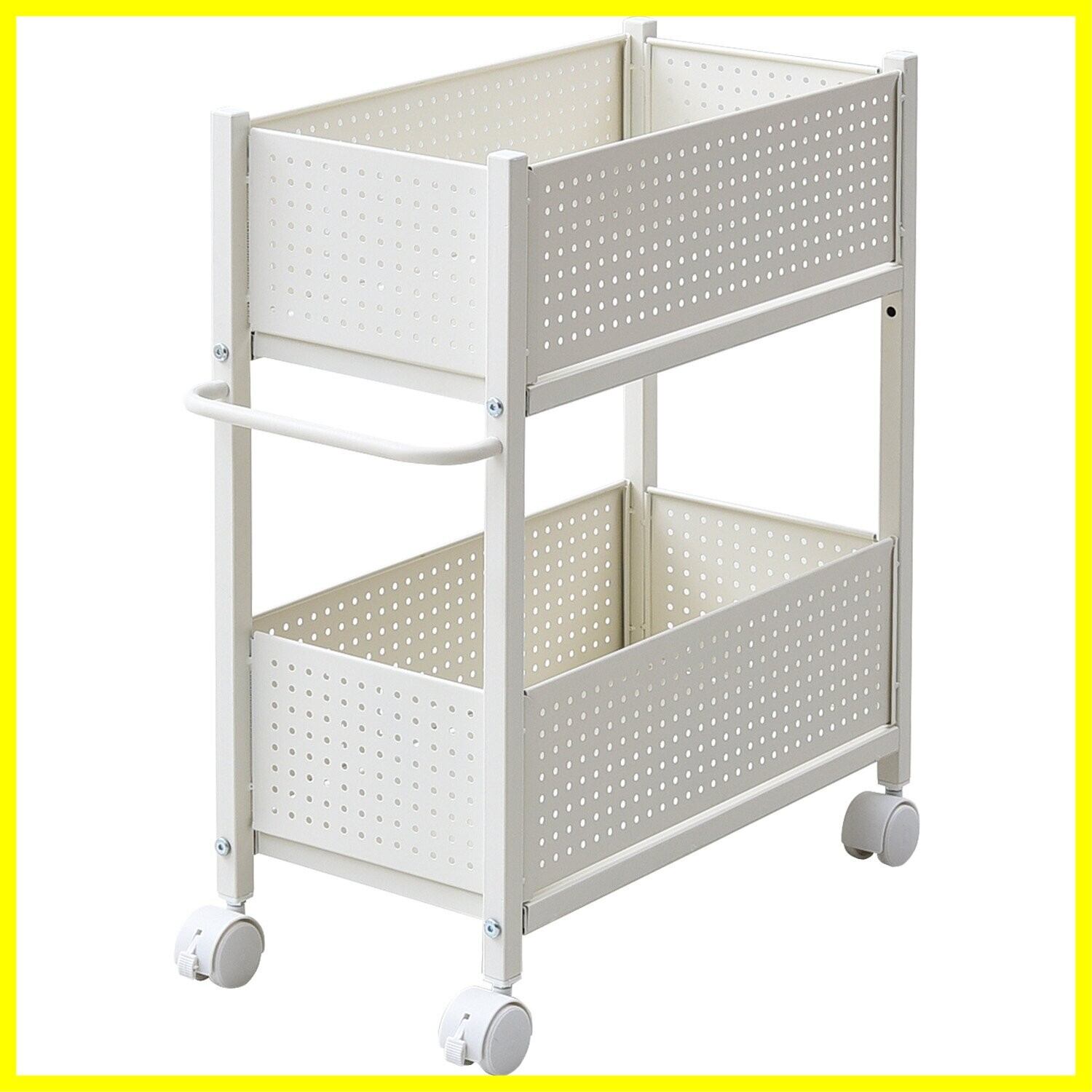 山善(YAMAZEN) 押入れ(クローゼット)収納 ラック 幅26×奥行57×高さ64.5cm 取っ手 ストッパー付きキャスター 上段下段かご 横板が取り外せる 組立品 ホワイト/ホワイト OPR-5726(WH/WH)