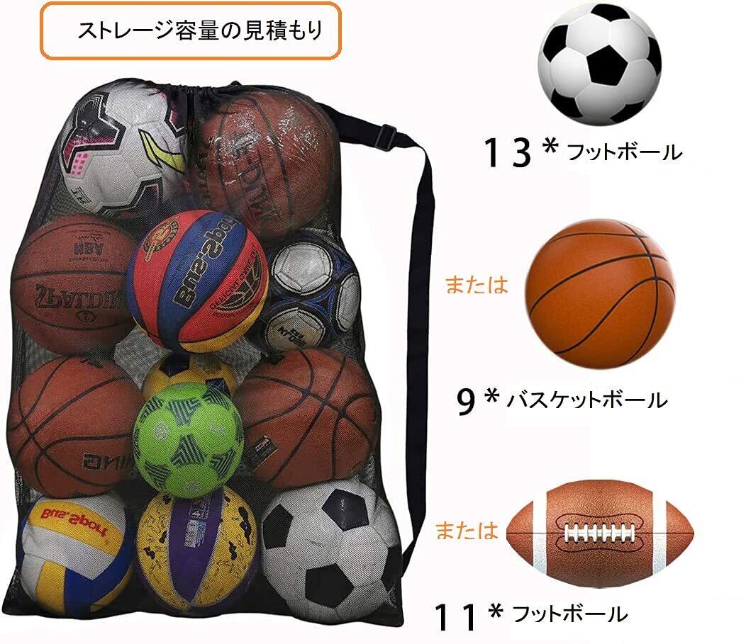 ボールネット ボールバッグ数個入れ 収容 特大70*90cm学校での使用 肩掛け ボール収納 保管用サッカー/バスケ/バレーボール 持ち運び 網調節可能