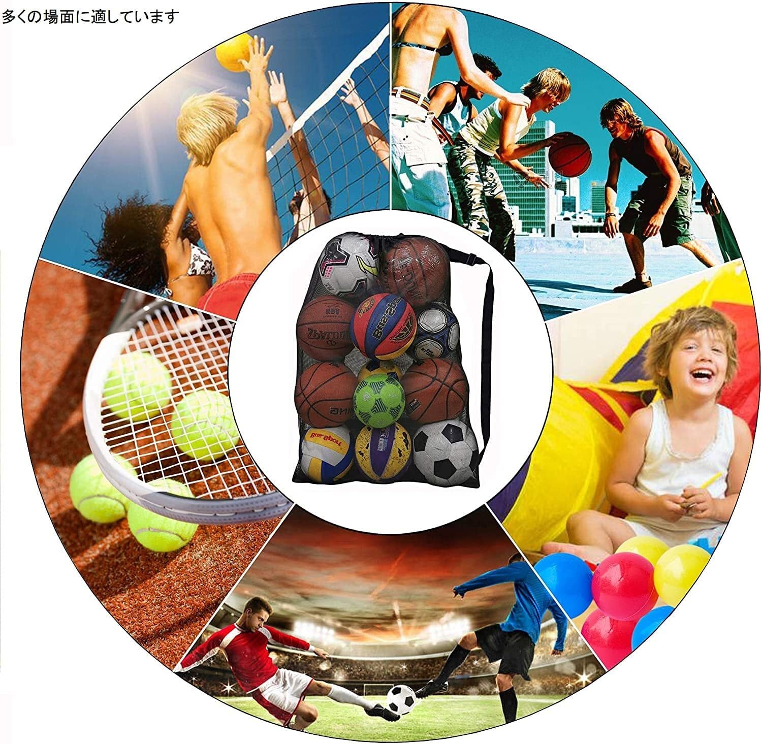 【多用途】 運動会、サッカー、フットサル、バレーボール、ビーチボール、ドッチボール、バスケットボール、ヨガボール、テニスボール、ゴルフボール、トレーニング、ダイビング用品、用具入、靴入れ、体育用品の収納に使用できます。靴や大き目の物を収納するのも大変便利です.通常の子供のおもちゃの保管にも使用できます