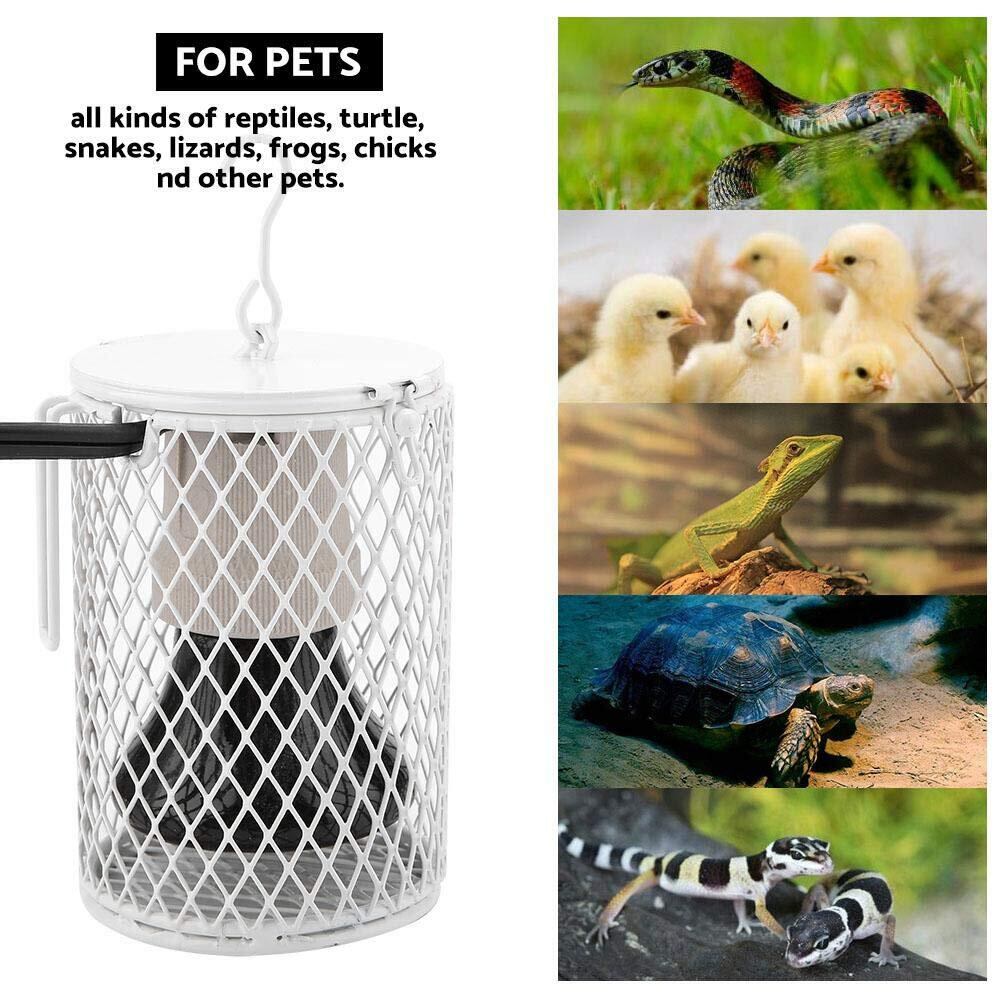 100Wプラグ 爬虫類保温球 爬虫類 セラミックヒーター ペット暖房電球 爬虫類 ライト 吊りフック 断熱保護ガード付き 爬虫類 カメ 小動物用 両生類用照明器具