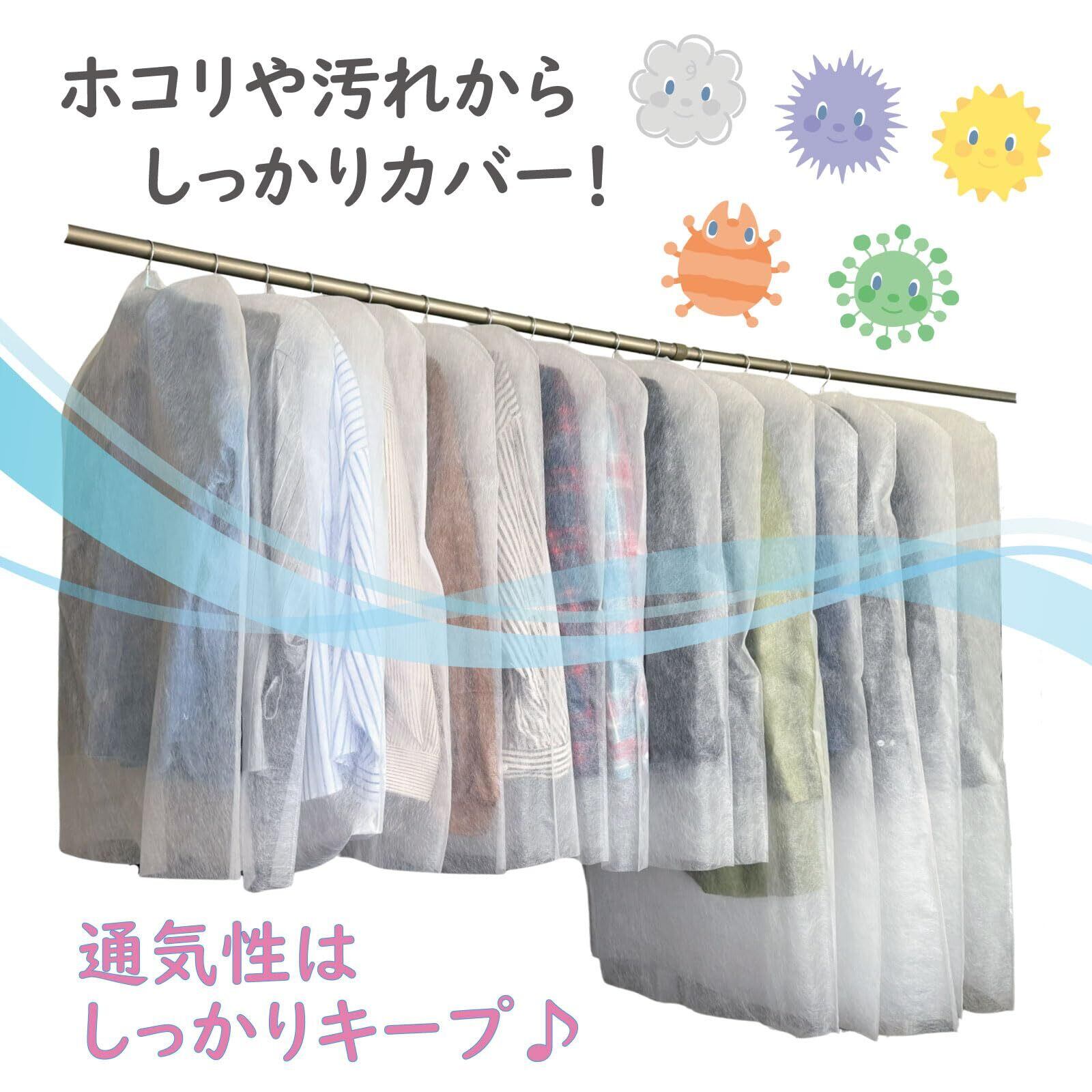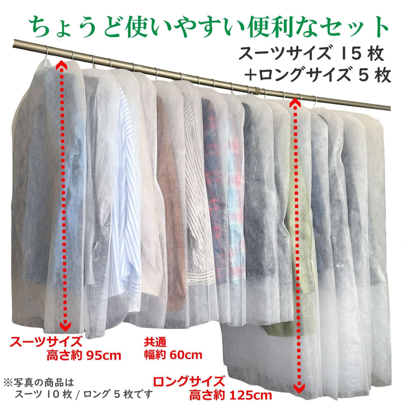 衣類カバー 不織布 洋服 カバー 20枚組(スーツ15+ロング5) 通気性の良い不織布素材製 湿気がこもらない 通気性はキープしながらホコリや汚れからしっかりガード たっぷり入って便利