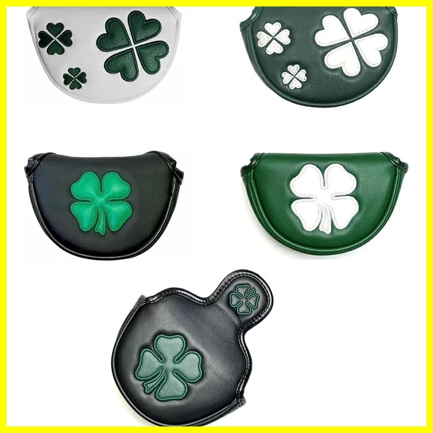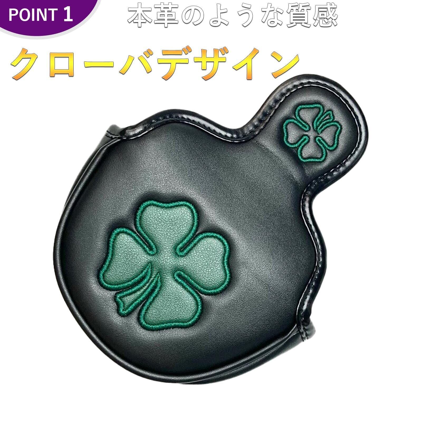 ゴルフ ヘッドカバー パターカバー オデッセイに対応 レッド小型マレットタイプ対応 マグネット付け クローバー模様