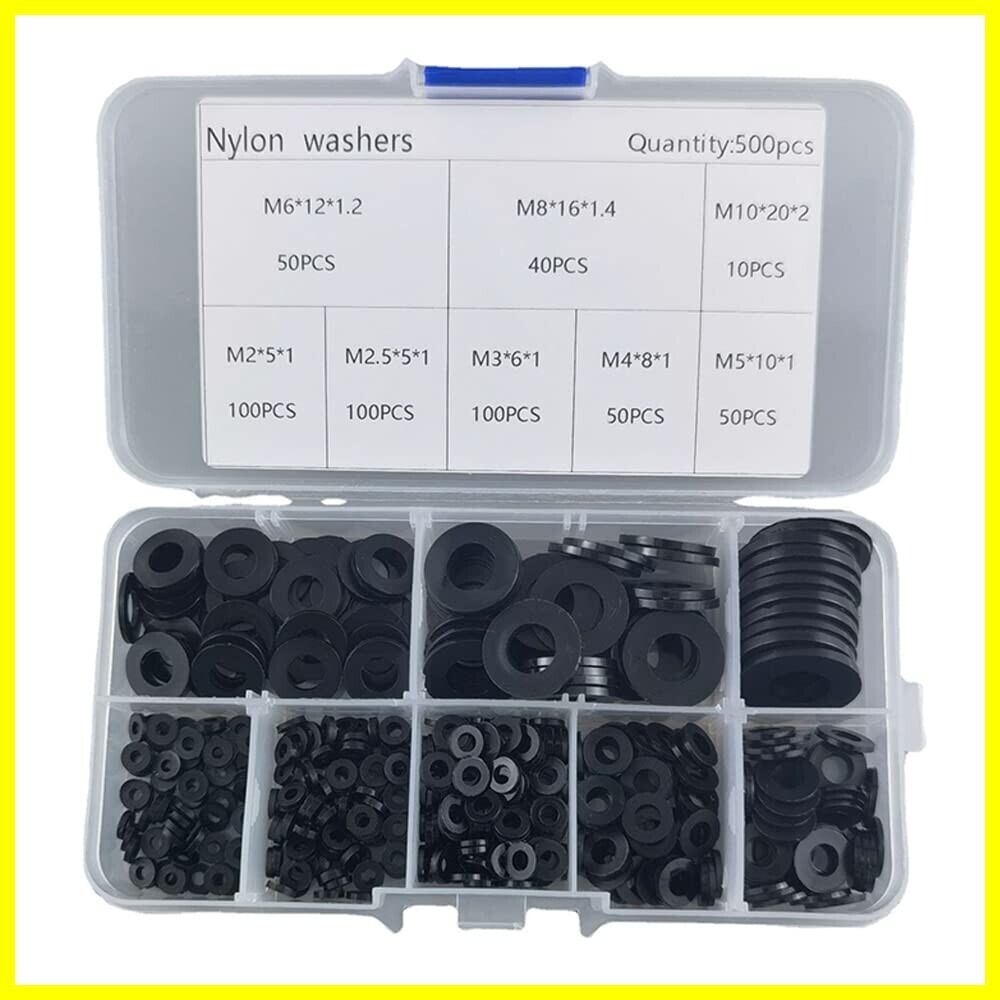 セット内容:黒ナイロンワッシャー M2 (100PCS)M2.5 (100PCS)M3 (100PCS)M4 (50PCS)M5 (50PCS)M6 (40PCS)M8 (40PCS)M10 (10PCS)。