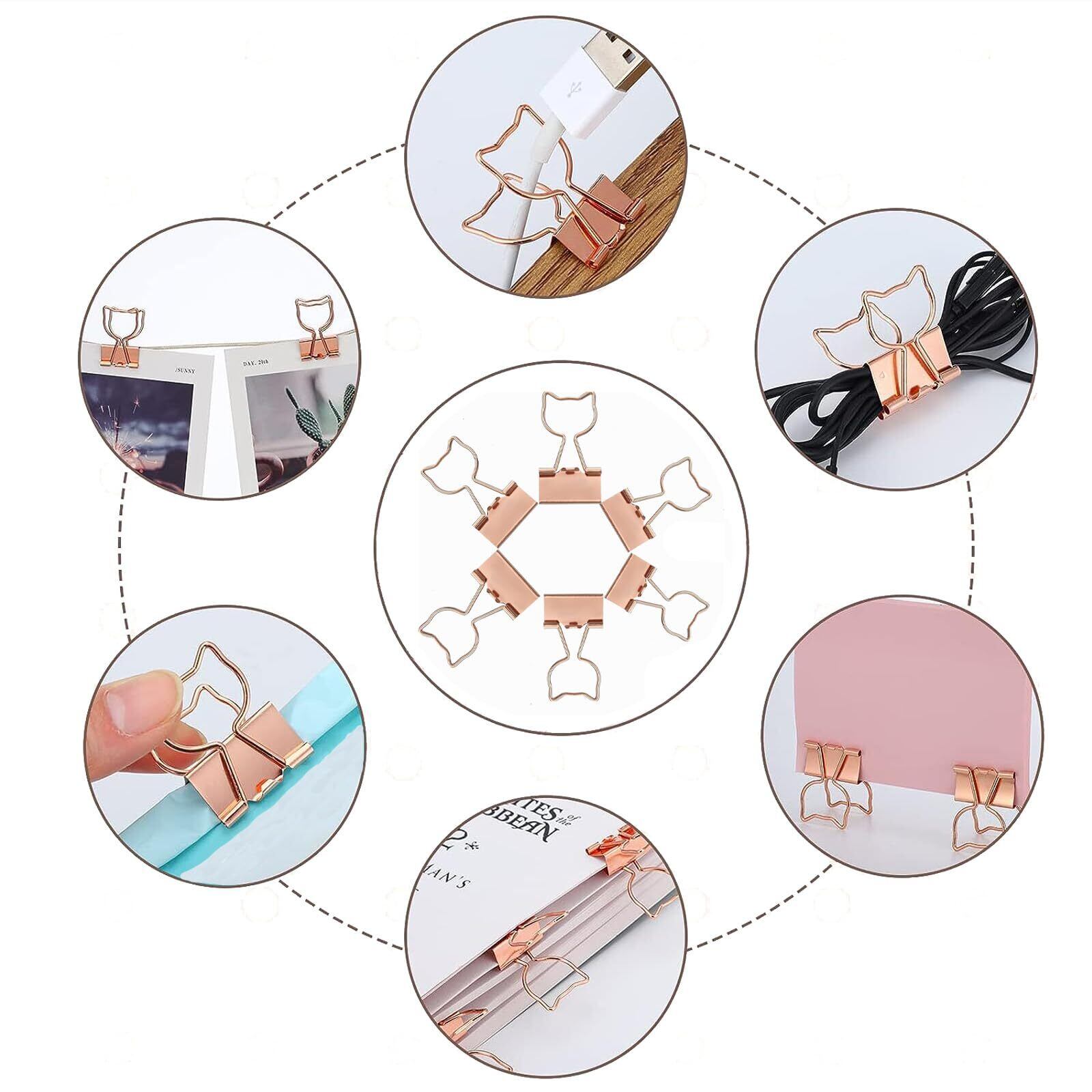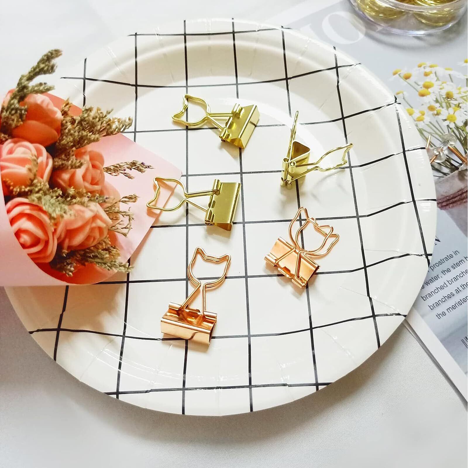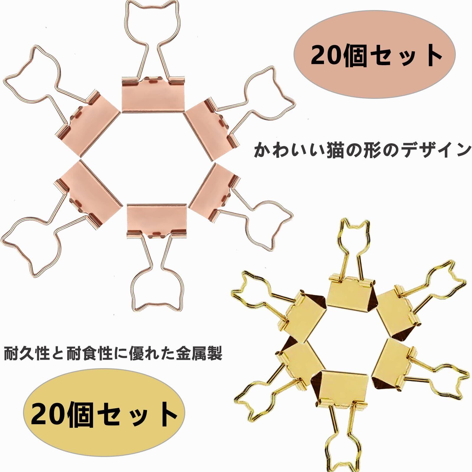 【商品詳細】:猫型クリップ40個入。サイズ:19 mm、とじ枚数約40枚。色:ローズゴールド20個、ゴールド20個。大容量でさまざまなニーズを満たすことができます。