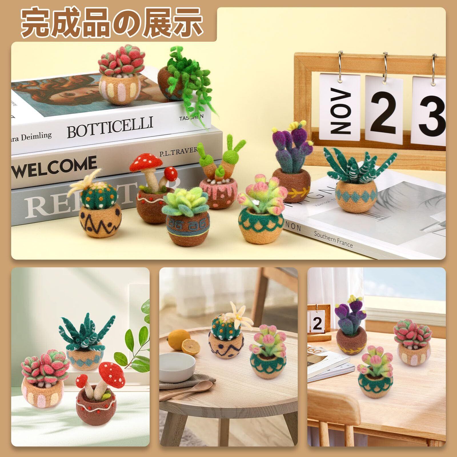 Dennty 羊毛フェルトキット、多肉植物ニードルフェルト9点セット、キットには ウール、マット、 ニードル、Diyスターターキット説明書付き