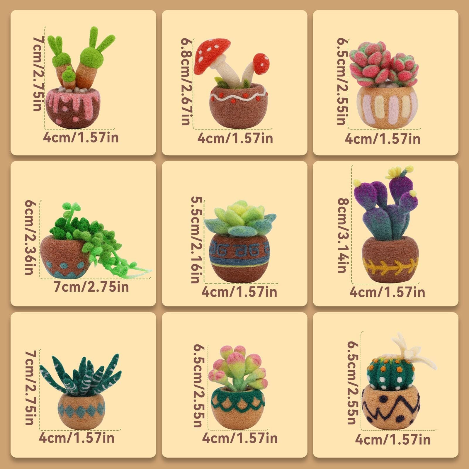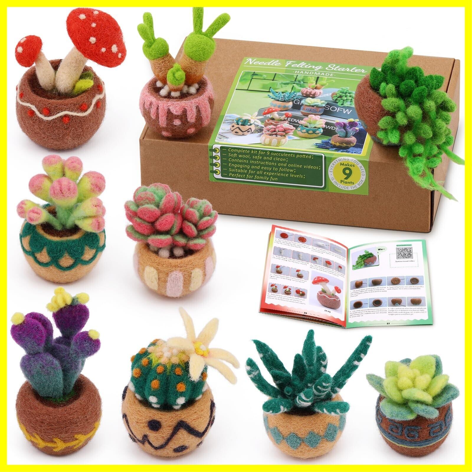 詳細な説明書: 多肉植物のニードルフェルトスターターキットには、ウールフェルトの作り方がとても詳しく説明されています。それぞれの多肉植物には写真、説明文、ビデオチュートリアルがついているので、お気に入りの羊毛ニードルフェルトを簡単に作ることができます