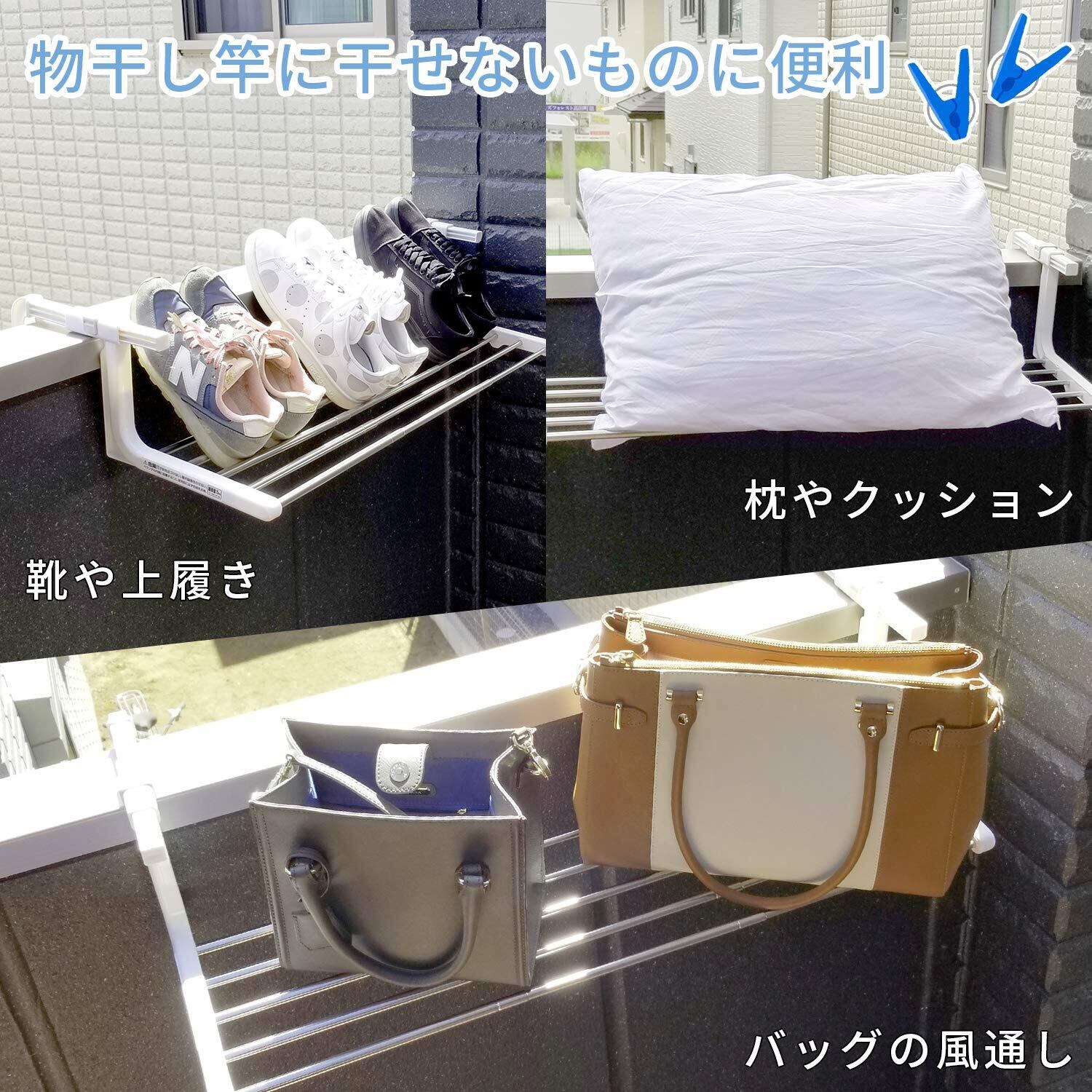 ●工具不要のかんたん取り付け! ベランダ内側の空きスペースに干すことができます!