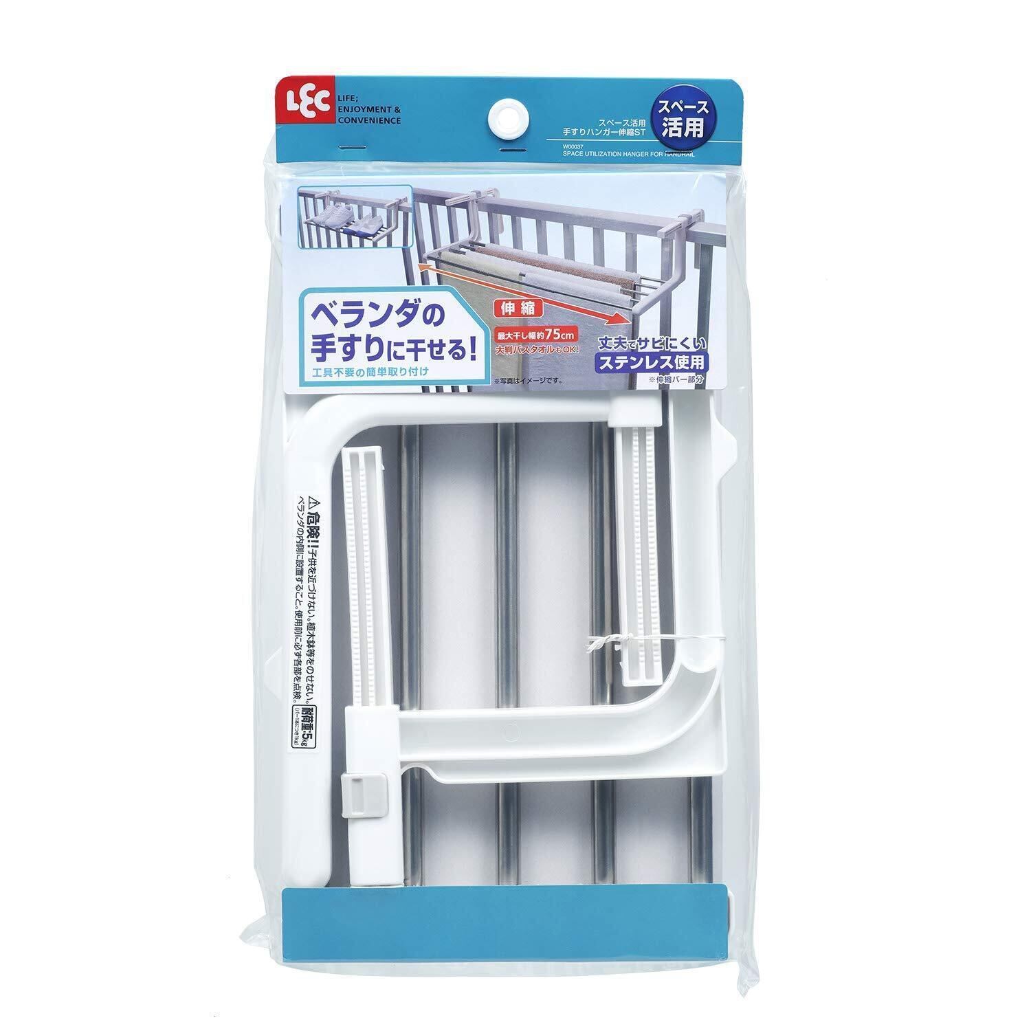 レック 伸縮 ベランダ 手すり バスタオルハンガー (最大干し幅75cm) ステンレス製 物干し 工具不要 W00037