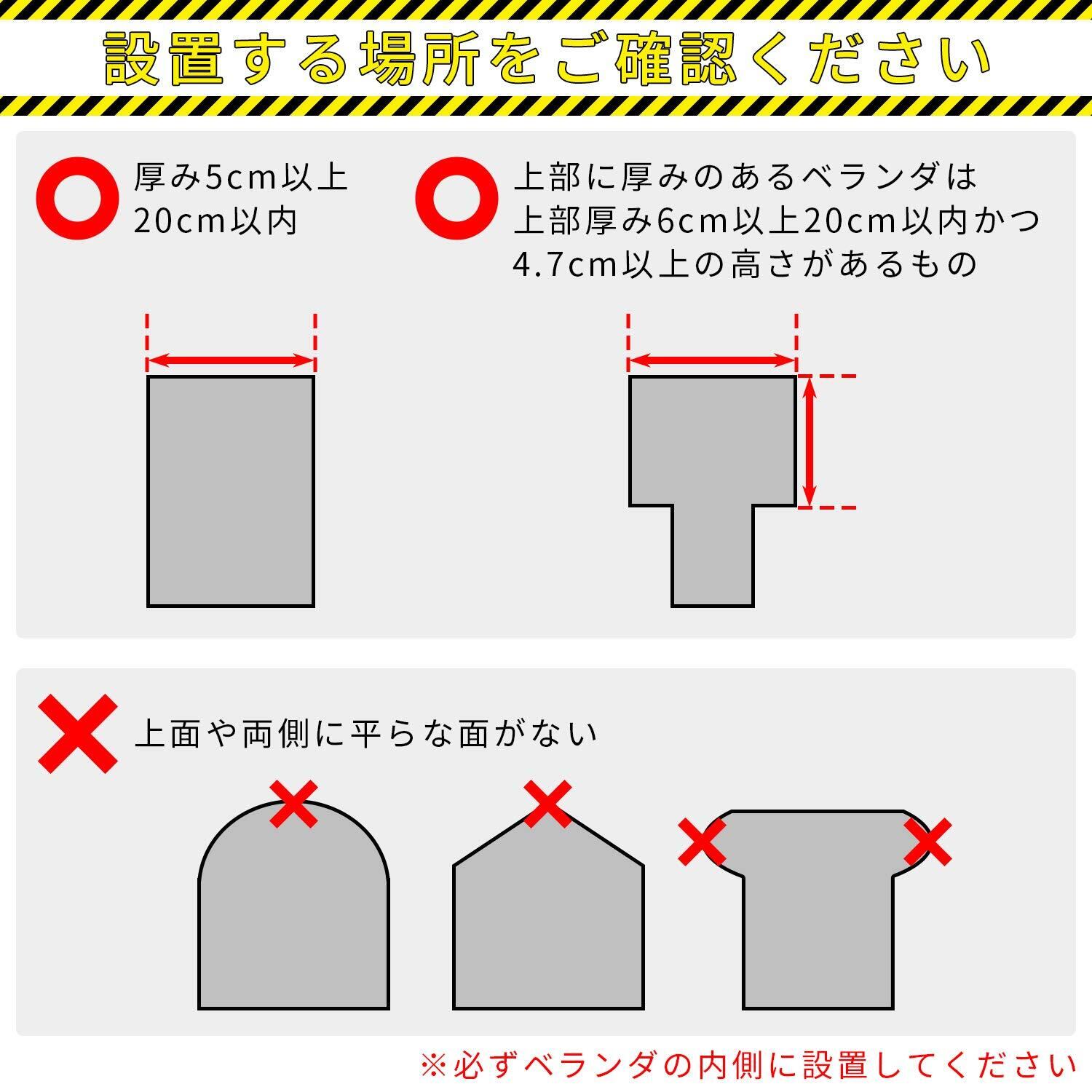 ●必ずベランダの内側に設置してください
