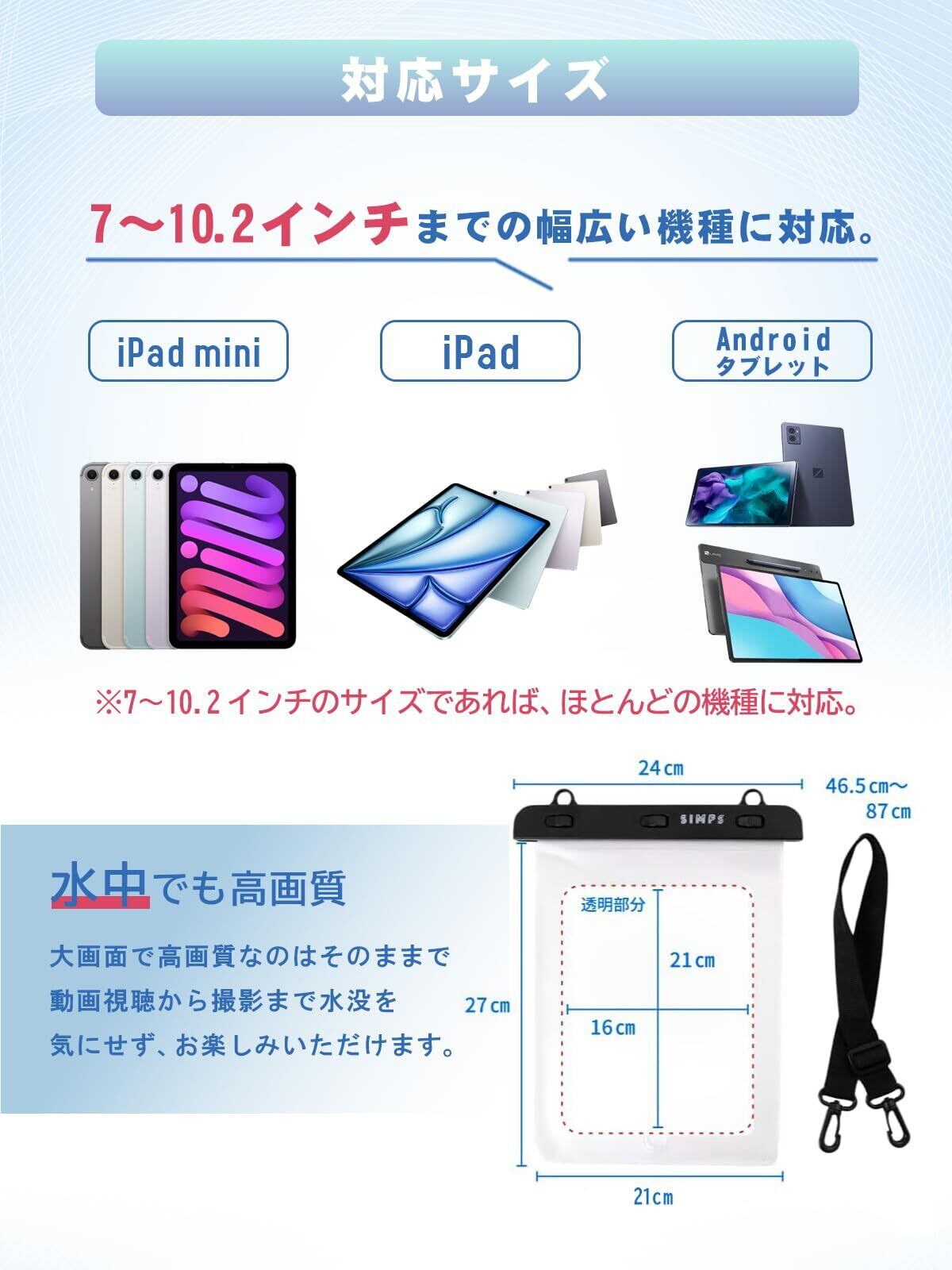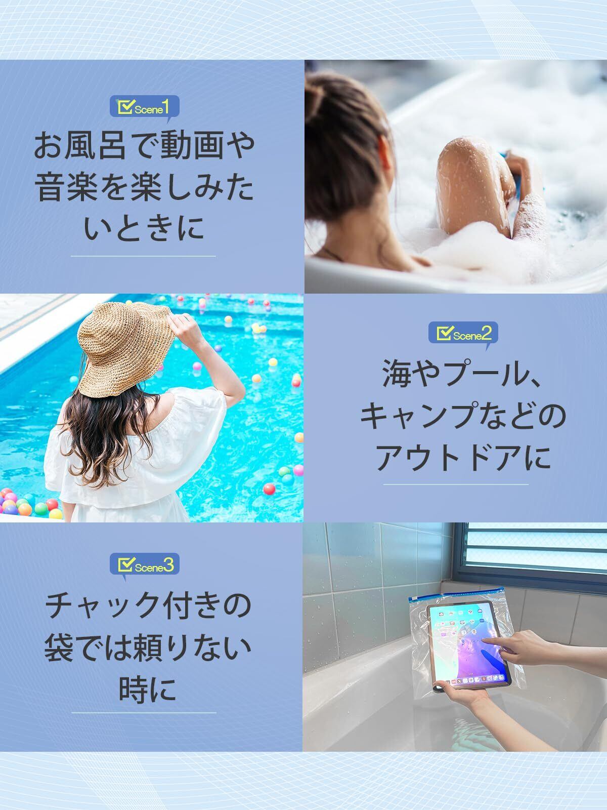 【ガジェットライター監修】 タブレット防水ケース 「10.2インチまで使用可能x検査機関の認証テスト合格xタッチ操作可能」