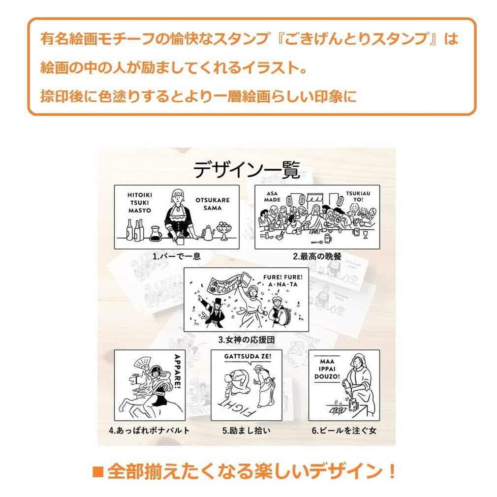 有名絵画モチーフの愉快なスタンプ『ごきげんとりスタンプ』は絵画の中の人が励ましてくれるイラスト。