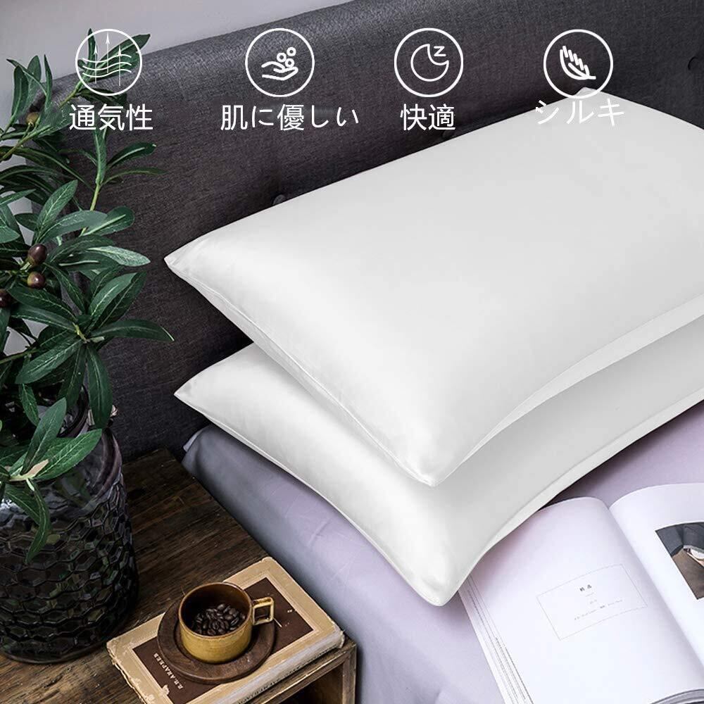 枕カバー 2枚セット サテンの枕カバー 封筒式ピローケース 美肌 美髪 両面シルクタイプ 滑らかな材質 静電気防止 (43*63, 白い)