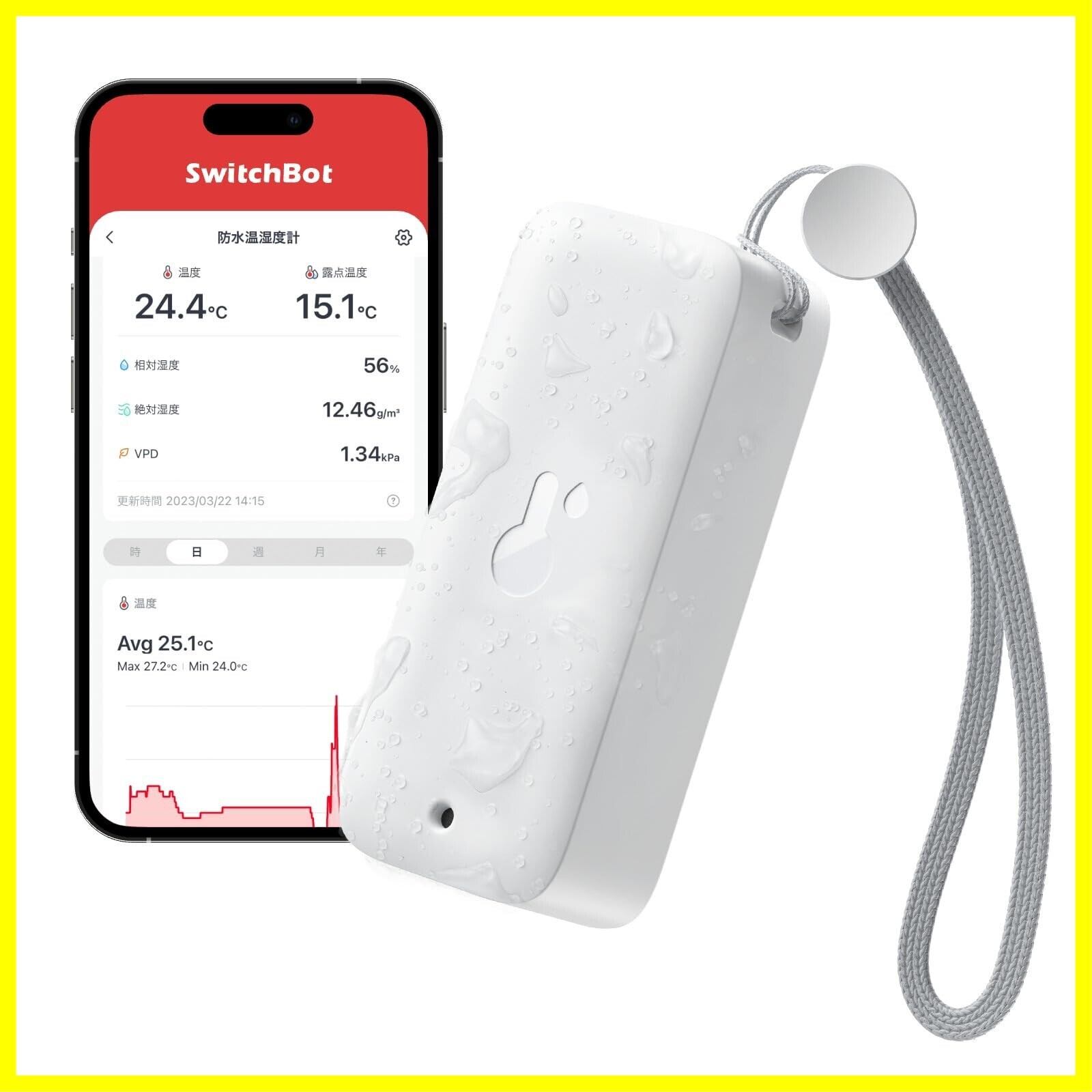 SwitchBot 防水温湿度計 Alexa 温度計 湿度計 - スイッチボット ワイヤレス 室内 屋外用 温湿度計 スマホで温度湿度管理 デジタル 高精度 コンパクト 温度 湿度 絶対湿度 異常通知 グラフ記録 スマートホーム Alexa Google Home IFTTT イフト Siriに対応(ハブ必要)