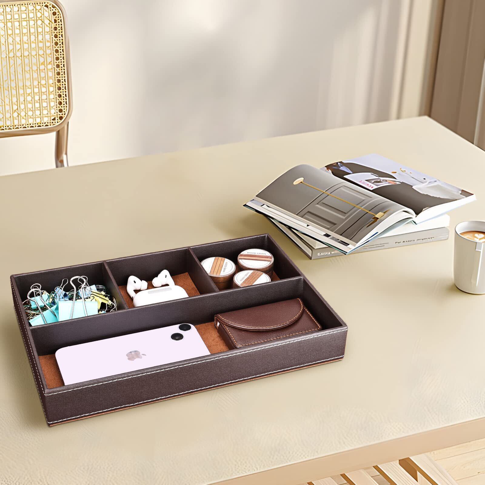 「良いプレゼント」レザー製デスクオーガナイザーは、テーブル、寝室、ベッドサイド、リビング、カウンター、ドレッシングテーブル、書斎など、家庭やオフィスのどこにでも置くことができます。自分で使用にも、贈り物用もピッタリで優れた卓上トレーてす。同僚、友人、先生、オフィスの誰かなど、女の子や子供に贈る良いプレゼントです。