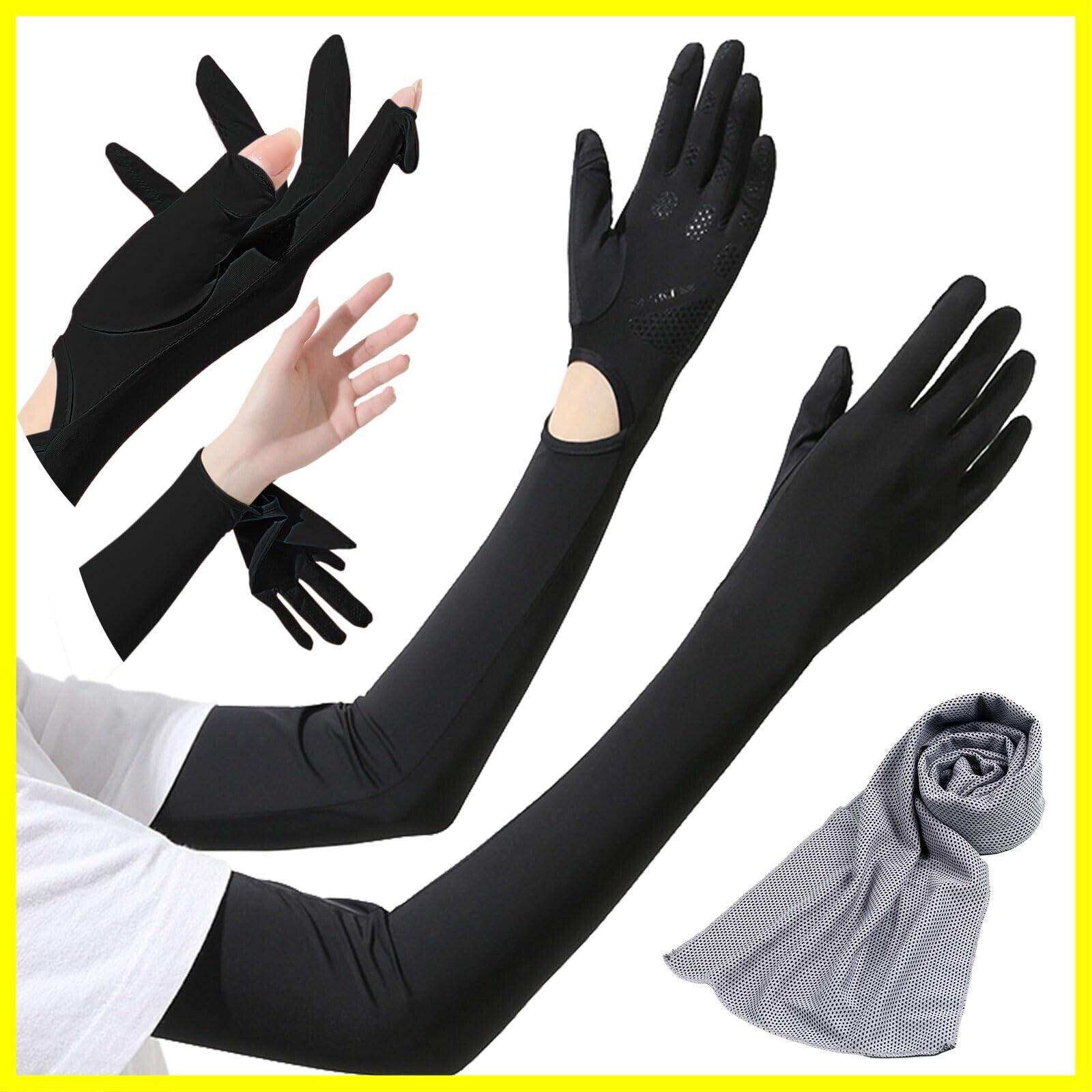 [fortulux] アームカバー レディース 【冷感スカーフ付き】 UVカット ロング 指先までフルカバー フリップ仕様 日焼け止め UPF50+
