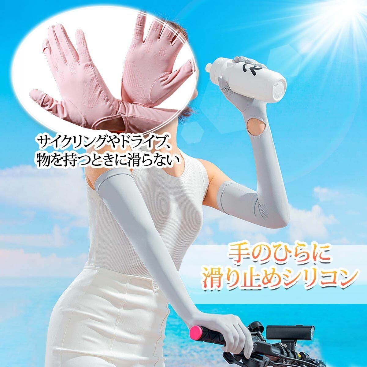 【快適な仕様】 手首が開いたデザインはアームカバーを素早く外したいときに大変便利です。また親指と人差し指はフリップ仕様なので、スマホ操作の邪魔をしません。手のひらには運転やスポーツなどがしやすい滑り止めシリコン付き。腕周りはボタンで調整できるからずり落ちません。パワーストレッチで伸びがよく、手の動きに合わせて素材が伸縮、締め付け感もありません。さらっとした素材なので脱着も楽。