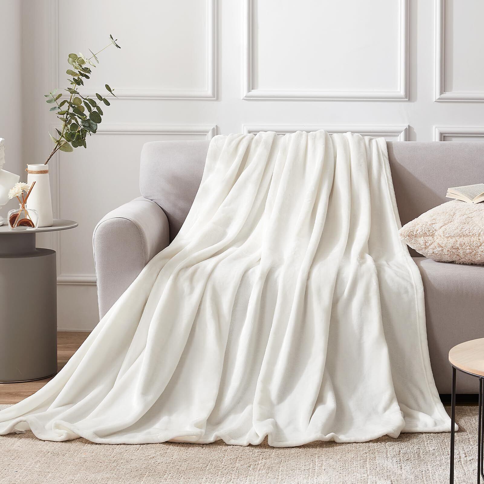 Hansleep 毛布 もうふ 冬用 ダブル ブランケット 大きめ 200x220cm 大判 ホワイト マイクロファイバー 柔らかく 肌触り フランネル 洗える 軽量 静電防止 四季適用 (200x220,ホワイト)