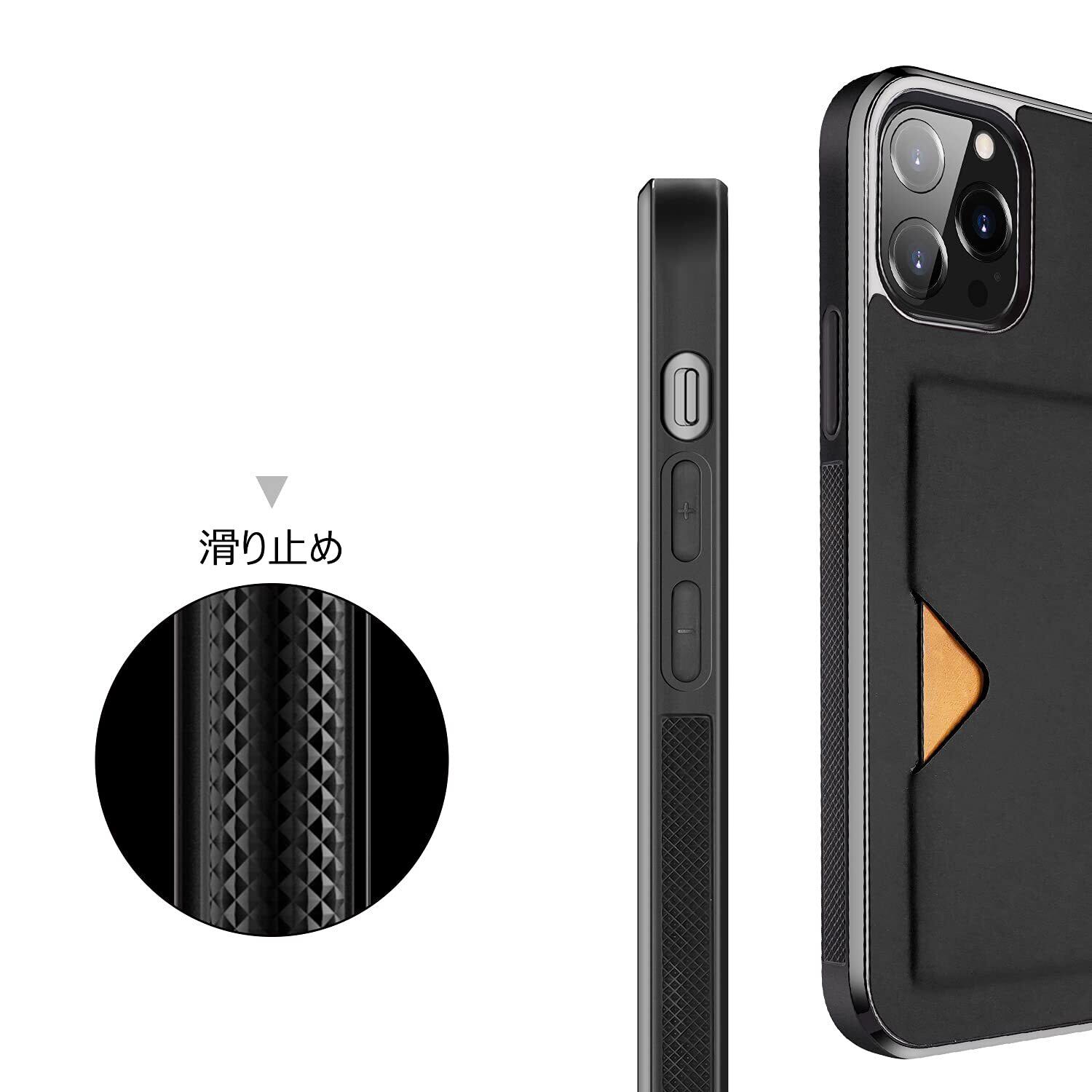 【背面カード収納付】スマホケース 用の iPhone 13 Pro ケース カード収納 上質な手触り アイフォン 13 プロ カバー 耐衝撃 軽量 薄い ICカード収納 OWLGuardian スマホケース (ブラック)