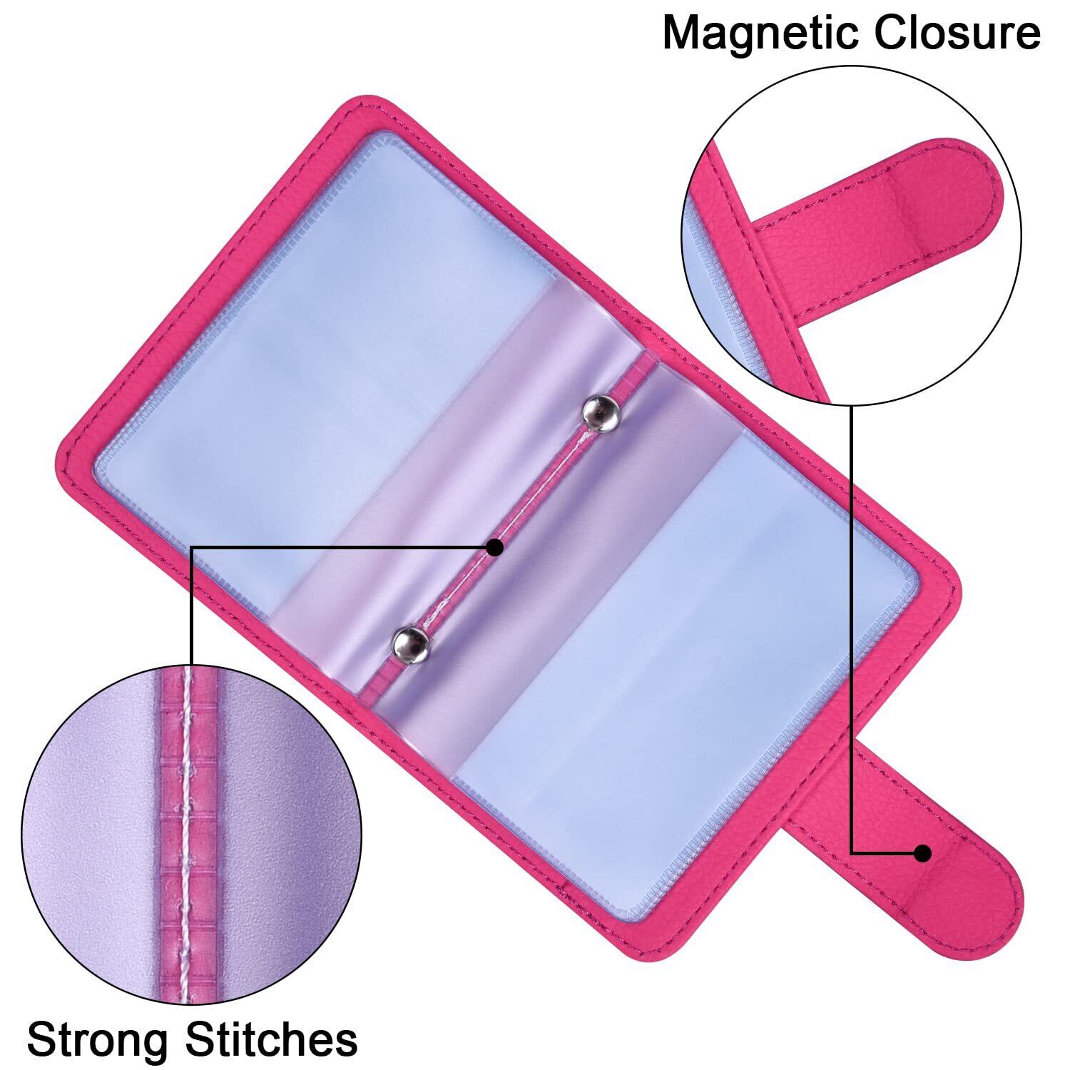 [Wisdompro] クレジットカードケース スキミング防止 カードファイル 透明 資格証/保険証/免許証/キャッシュカードケース ポイントカード入れ PUレザー 縦型 20枚収納 ホットピンク