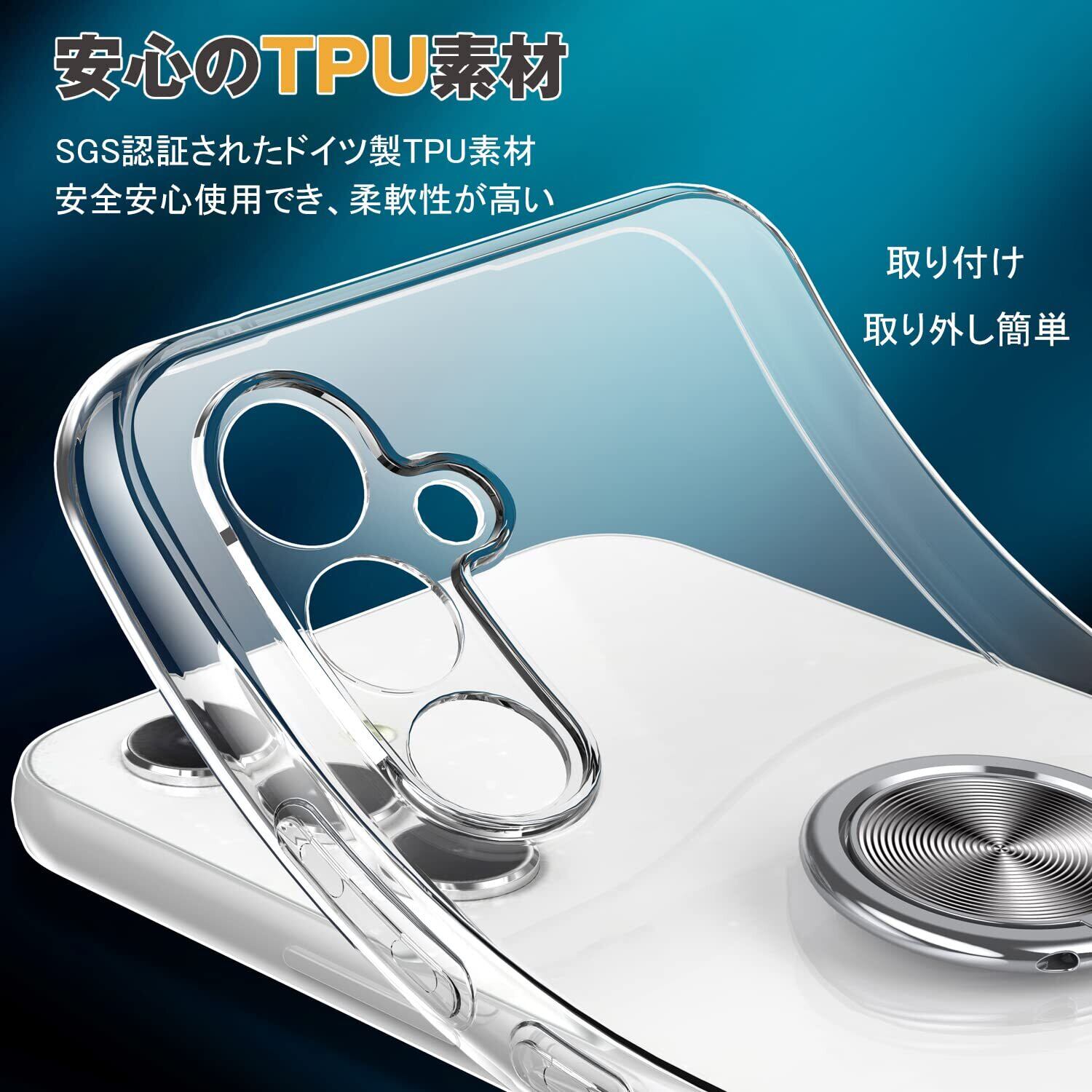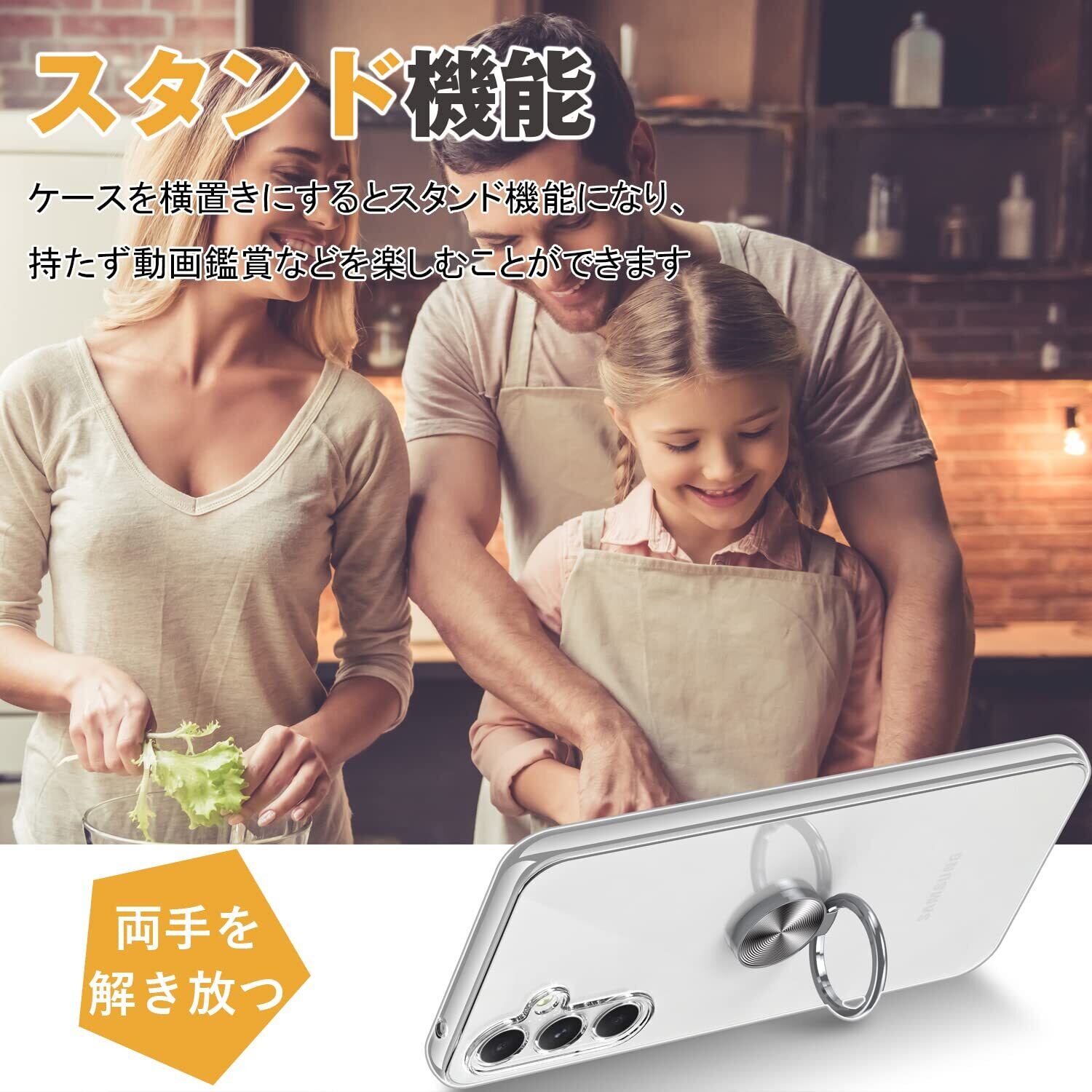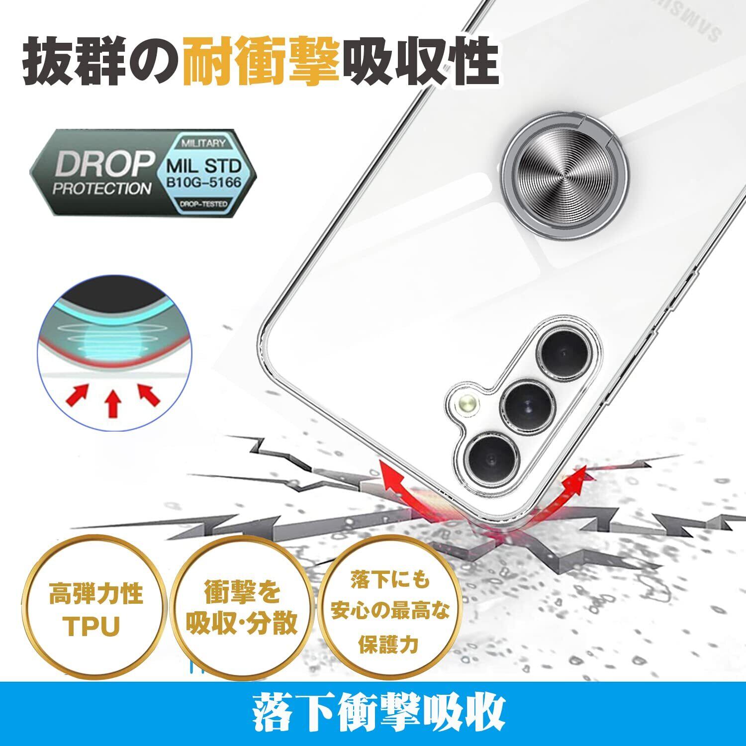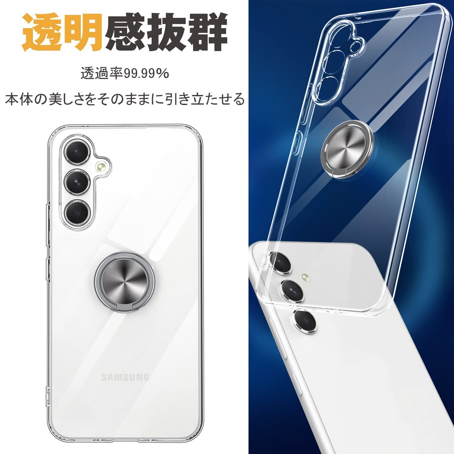 Galaxy A54 5G ケース リング付き Samsung ギャラクシー A54 / SC-53D / SCG21 用 カバー OURJOY スマホケース 透明 耐衝撃 スタンド 携帯ケース 軽量 薄型 おしゃれ 車載ホルダー ストラップホール付き・クリア