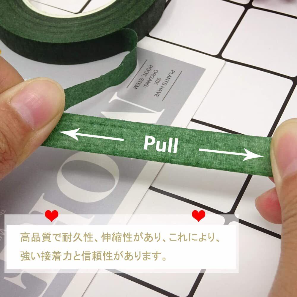 【高品質の素材】このフローラテープは、テクスチャ付き紙+水ベースの接着剤材を採用しており、高品質で耐久性、これにより、強い接着力と信頼性があります。また、滑らかで柔らかい質感があり、花の作品がより精巧になります。
