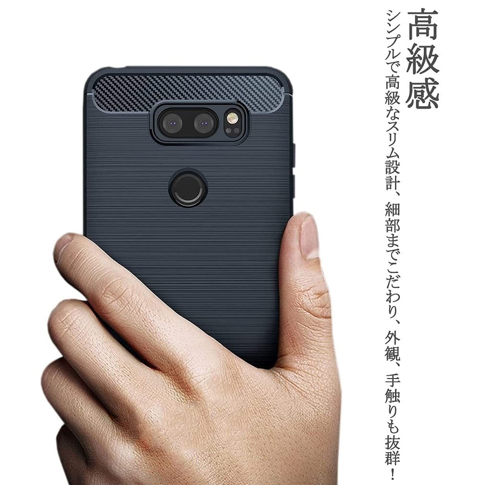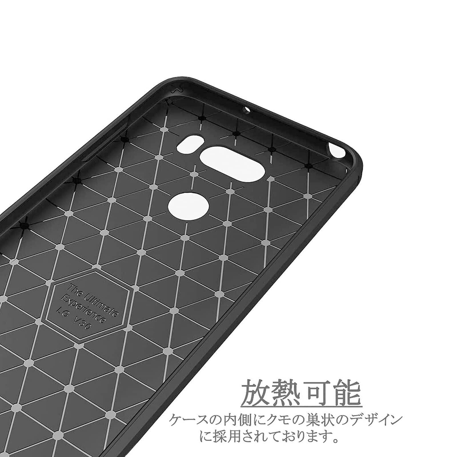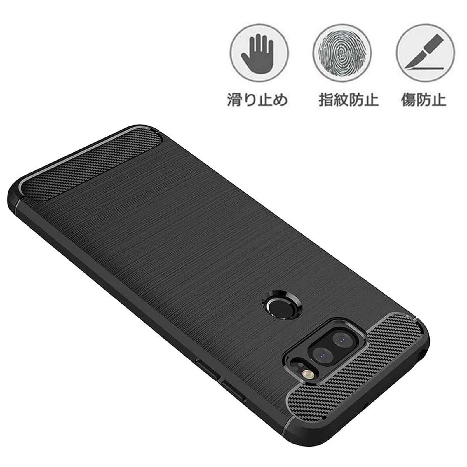 【UNEED】LG V30+ /isai V30+/LGV35 用の スマホケース L-01K /L-02K用の ケース カバー ケース 炭素繊維カバー (素材/TPU) 指紋防止 滑り止め 薄型 軽量 耐衝撃 簡易脱着 ソフトケース カラー:黒