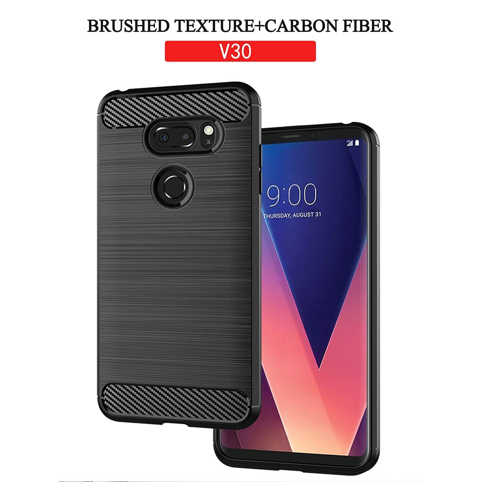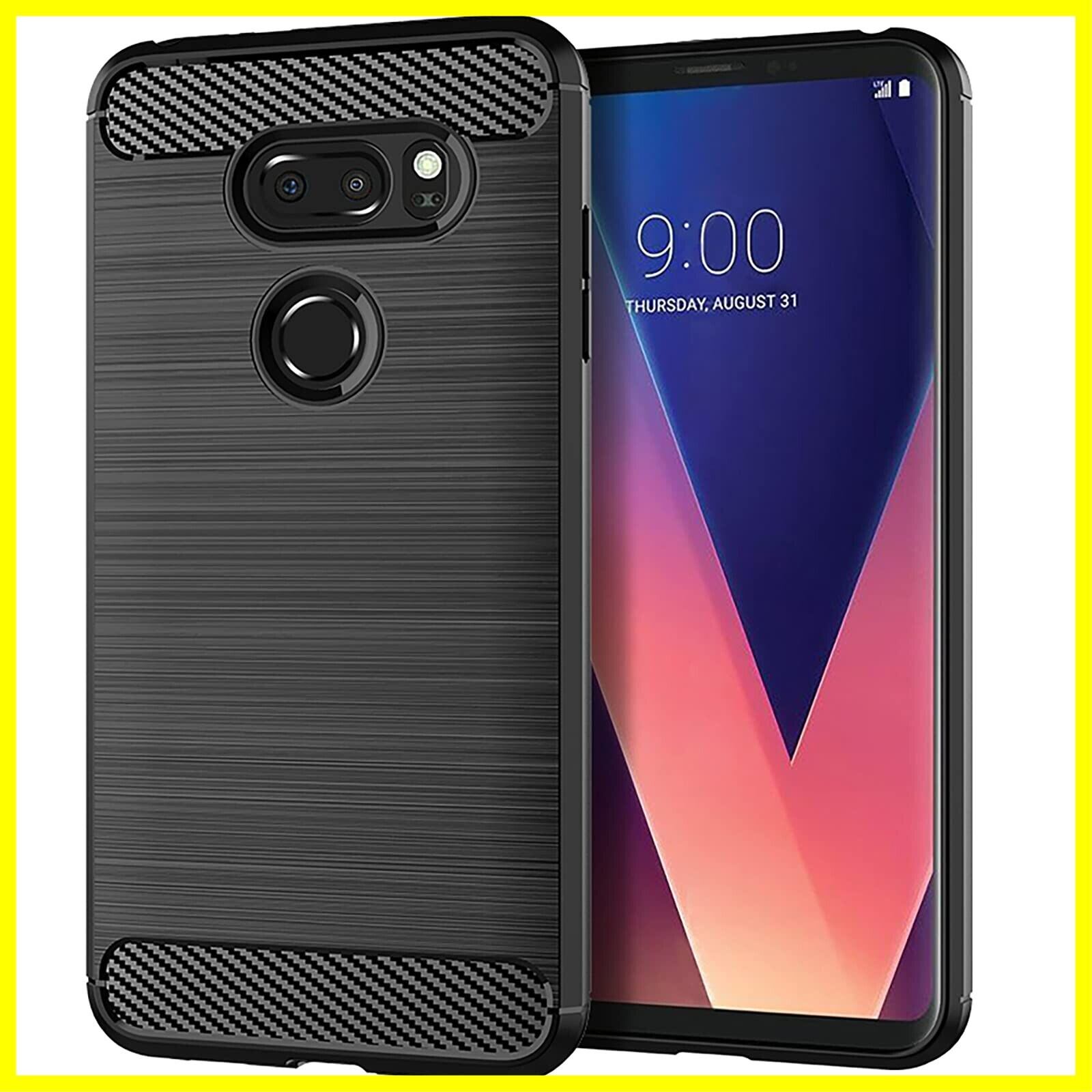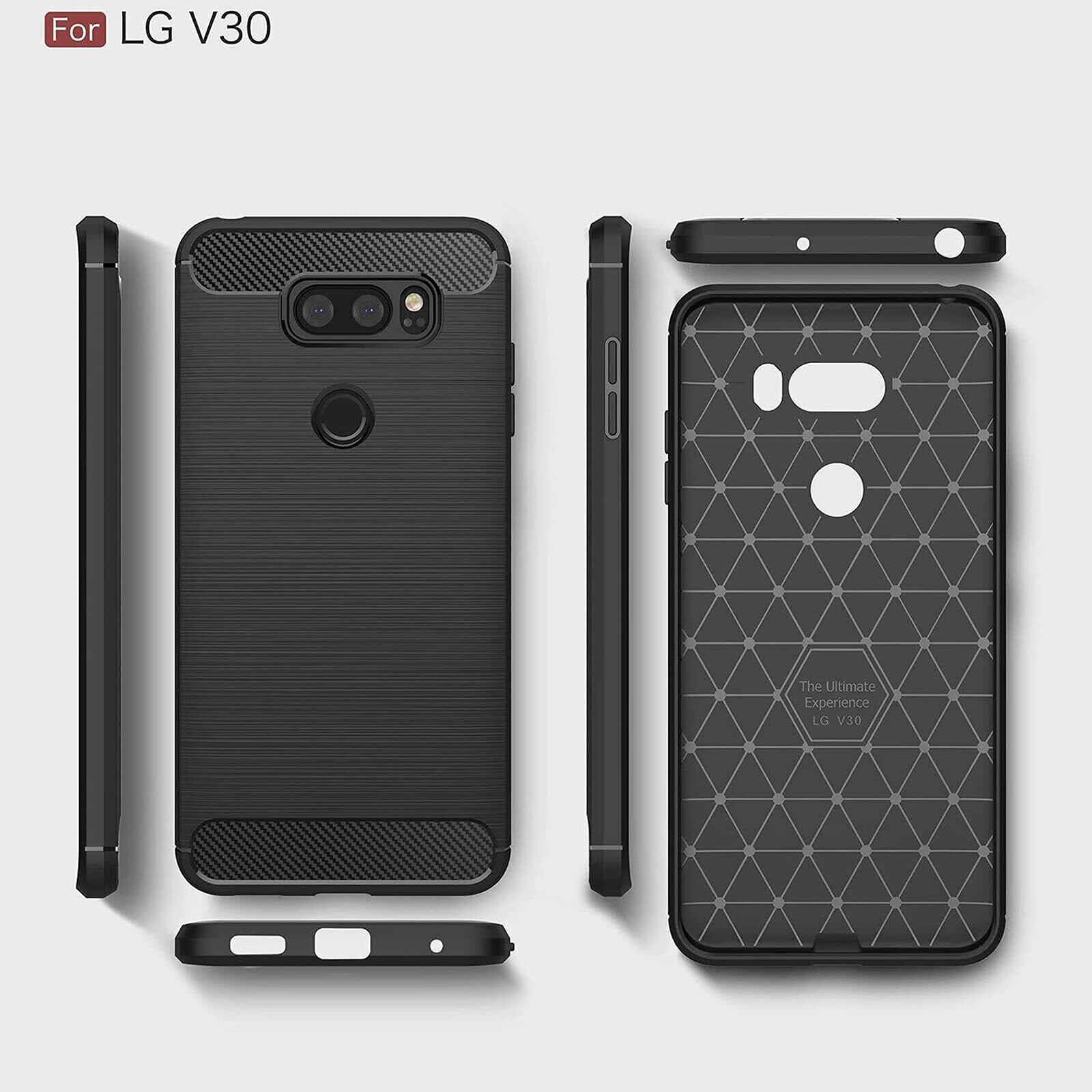 【UNEED】LG V30+ /isai V30+/LGV35 用の スマホケース L-01K /L-02K用の ケース カバー ケース 炭素繊維カバー (素材/TPU) 指紋防止 滑り止め 薄型 軽量 耐衝撃 簡易脱着 ソフトケース カラー:黒