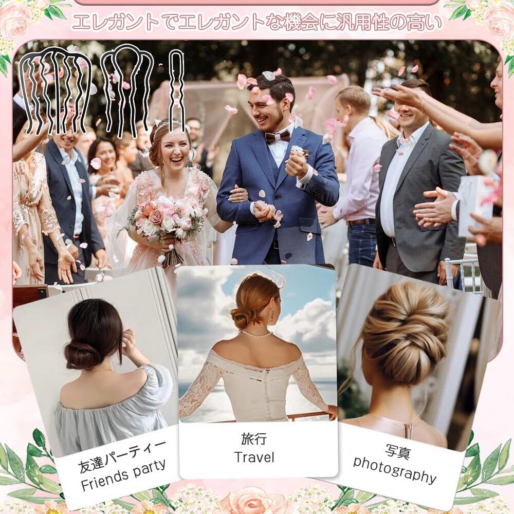 夜会巻きコーム 挿入式コーム 10枚セット ヘアアクセサリー 髪留め 盛り髪 ヘアサイドコーム 実用的 U字型のクリップ 髪飾り 髪ピン 髪の穂軸 結婚式 誕生日 日常生活 ヘアアクセサリー ブラック(2本の歯2pcs/4本の歯4pcs/7つの歯4pcs)