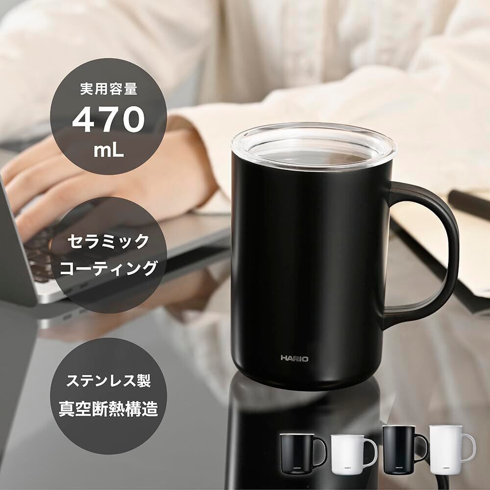 HARIO(ハリオ) セラミックコーティング 真空二重保温マグ ブラック 470ml フタ付き CMG-470-B