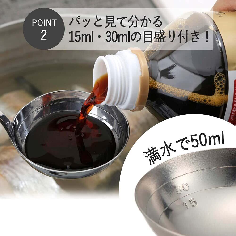 下村企販 おたま 目盛付き 【日本製】 食洗機対応 継ぎ目がなく洗いやすい 計量できる 15ml 30ml 50ml 全長21cm 小さい 調味料 汁物 レードル ステンレス 燕三条 40374