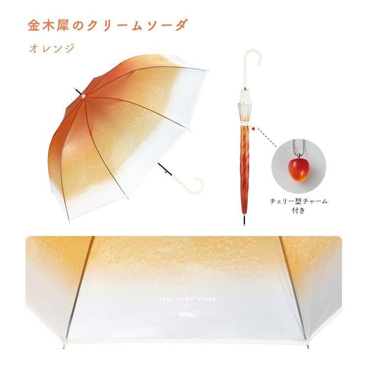 Wpc. 雨傘 [ビニール傘] 旅する喫茶×Wpc. クリームソーダアンブレラ オレンジ 長傘 60cm レディース 大きい さくらんぼ チャーム 映え レトロ 純喫茶 おしゃれ 可愛い 女性 PT-TA04-001