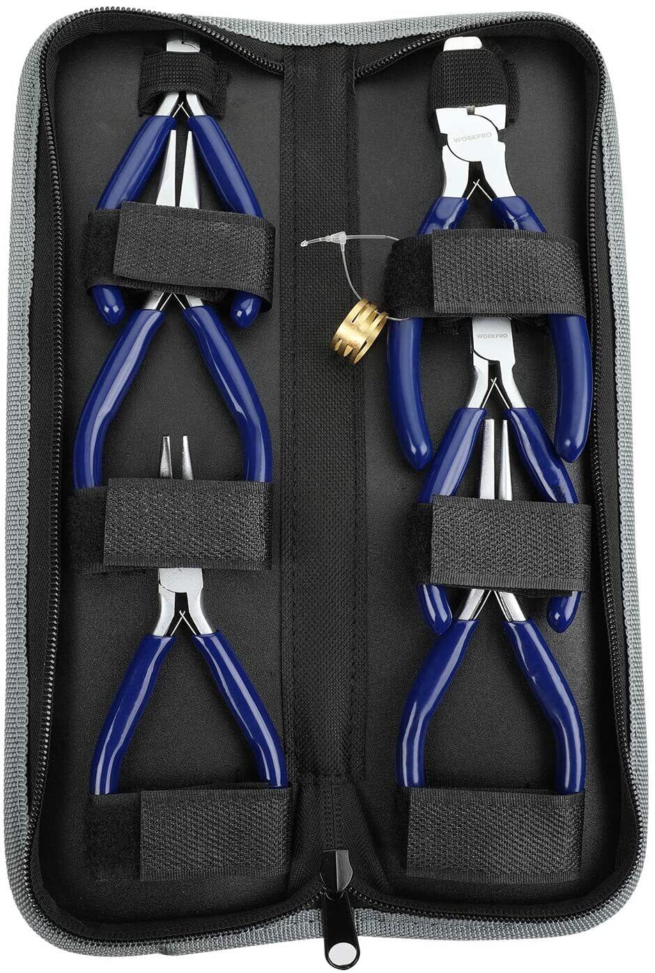 【完全版】WORKPRO アクセサリー用工具セット 8点セット 手芸ペンチセット ペンチ 平ペンチ 丸やっとこ ニッパー 精密手作り ビーズ製作 クラフト ハンドメイド DIY 道具 スプリング式 自動開き 収納ケース付き