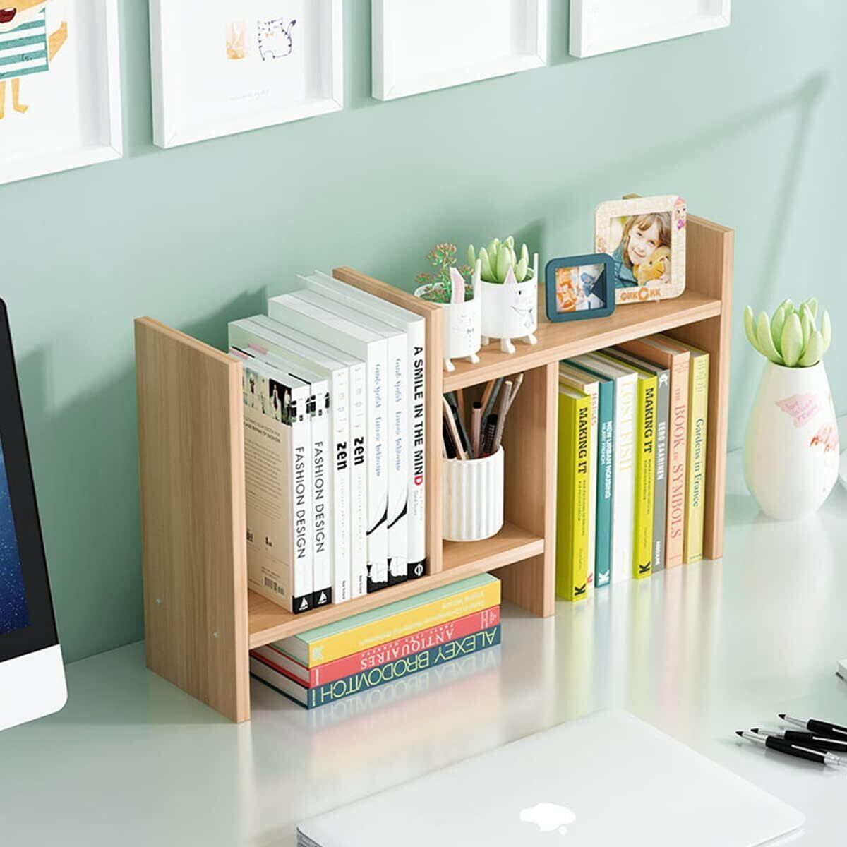 デスク上置き棚 収納ラック 多種組み立て方式 卓上 伸縮型 3種の組み合わせ 木製 スッキリ 整理整頓 ブックスタンド 本立て (くるみ)