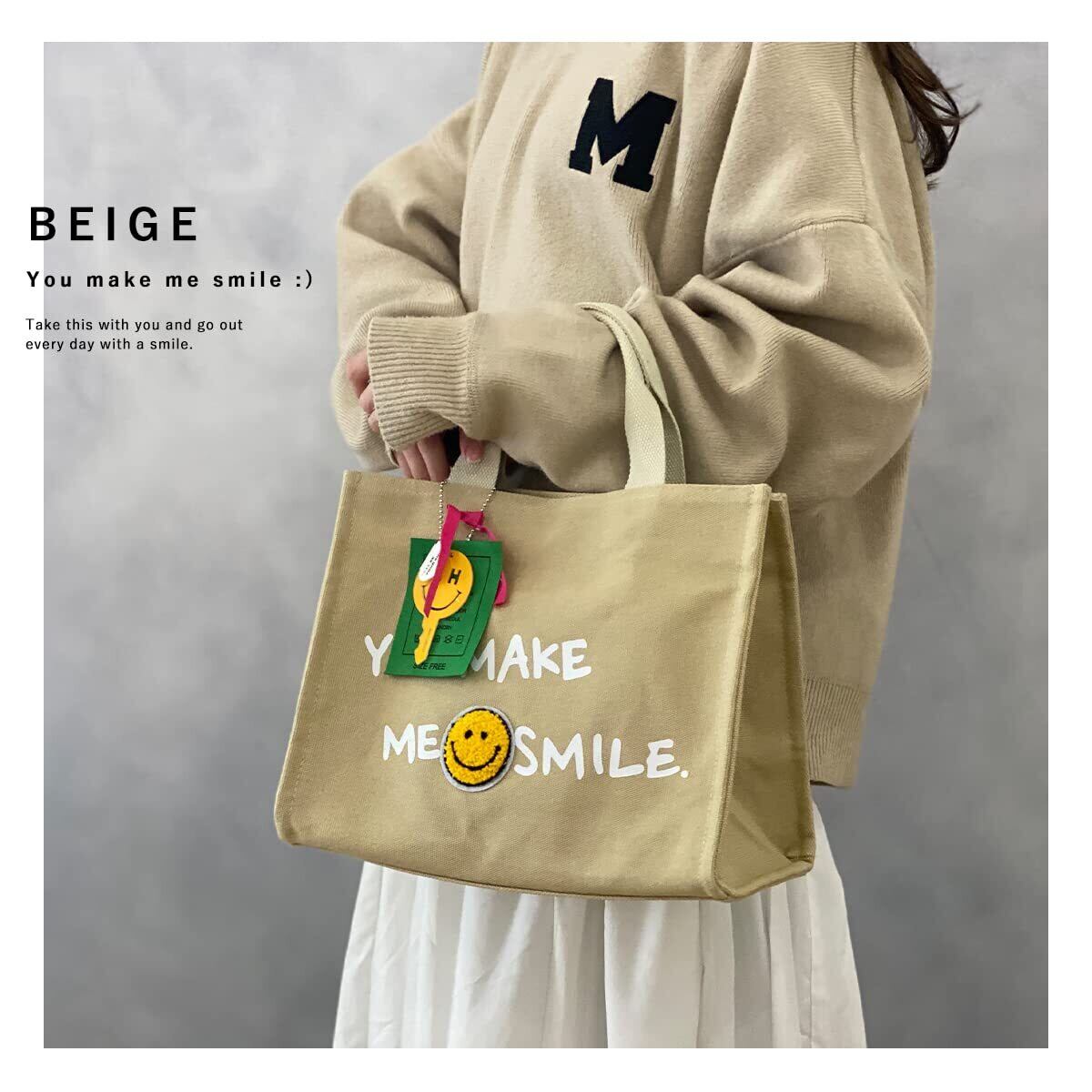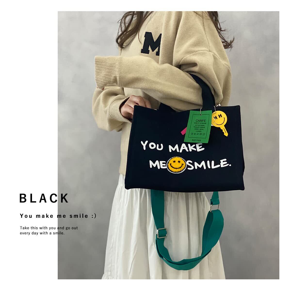 [DIVA Rose] トートバッグ 2way キャンバス ショルダー 斜めがけ スマイル 肩掛け コットン ランチバッグ 大容量 軽量 マザーズバッグ