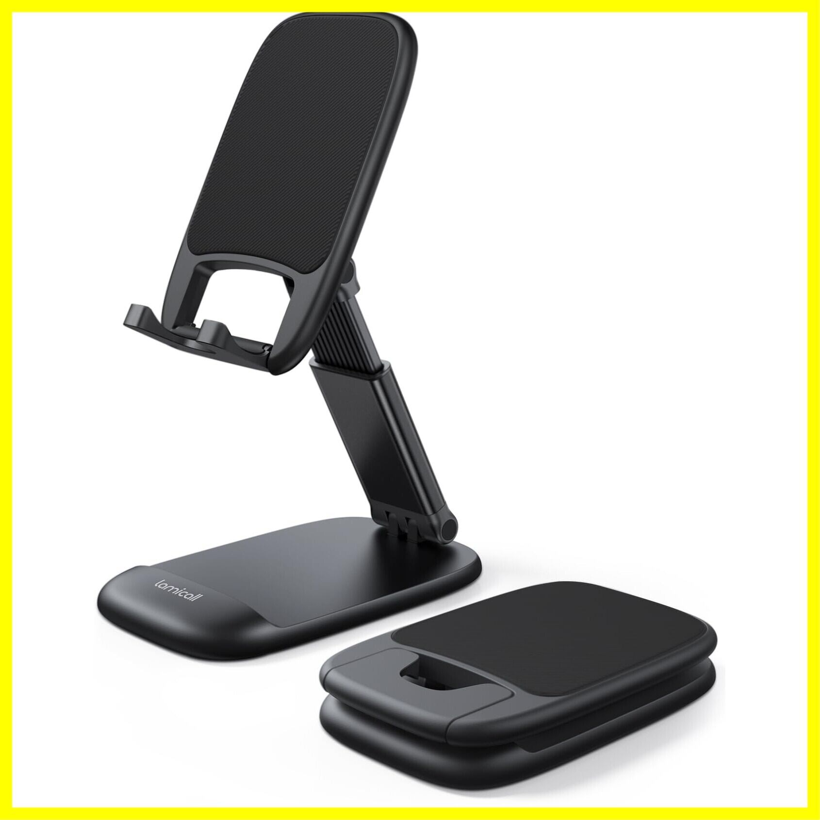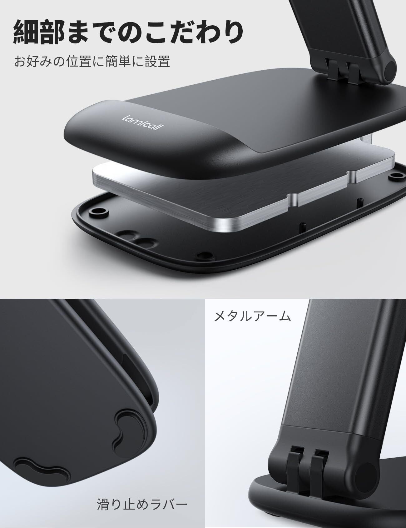 【1個セット】Lamicall 折り畳み 高さ調整 スマホスタンド 伸縮 : スマートフォン 角度 折りたたみ 携帯 アイホン 立て 置き 台 卓上 机 つくえ テーブル デスク 縦 横 滑り止め コンパクト スマフォ アンドロイド iPhone 17 Air 16e 16 15 14 plus pro promax 13 mini se Huawei Xperia android に対応 黒