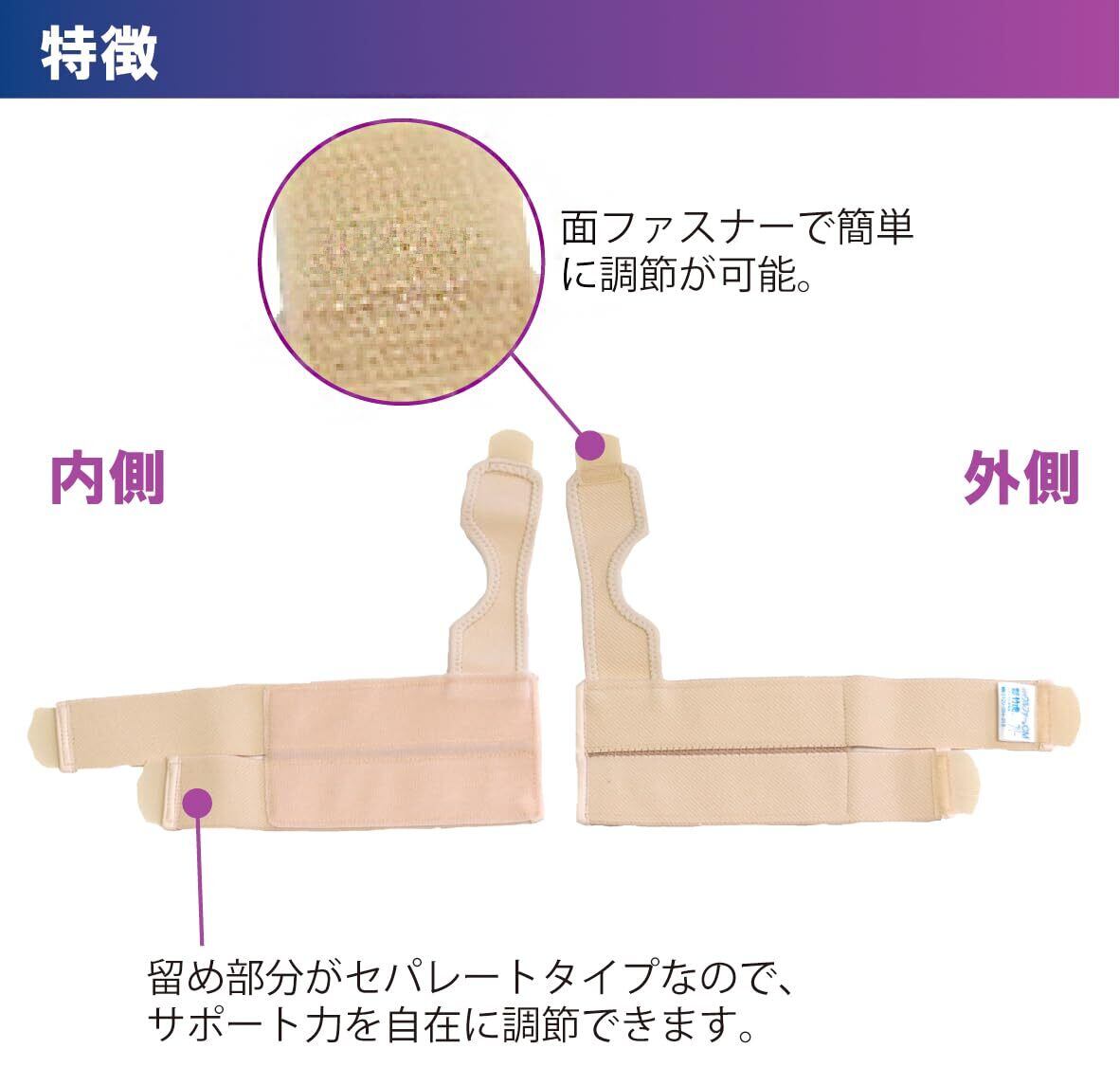 手首の留め部分がセパレートタイプなので、サポート力を自在に調節できます。