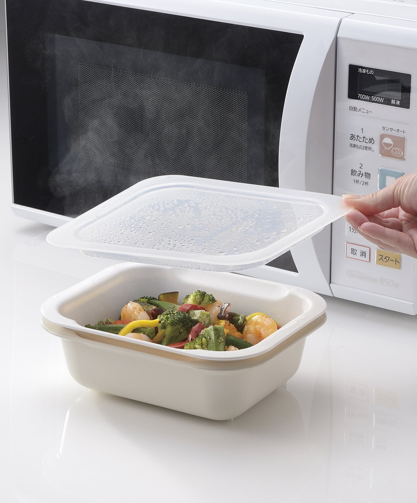 ●フタ付なので冷蔵庫での保管やレンジでの簡単な蒸し料理も出来ます