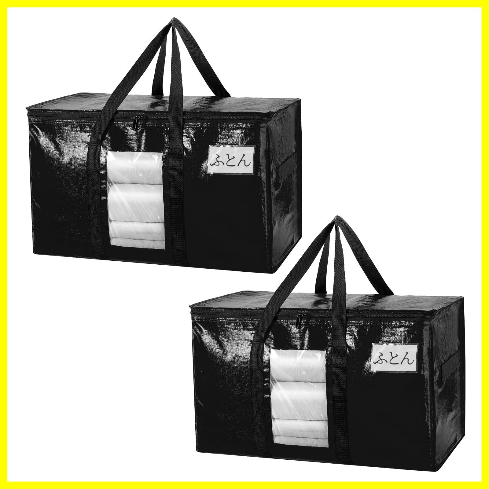 TAILI 大きいバッグ 布団収納袋 引越しバッグ 収納ケース 特大容量 透明窓 持ち手付き 衣装ケース 洋服 羽毛布団 防塵防水 折りたたみ式 カバン 省スペース 引っ越し 背負える キャンプ 旅行 耐荷重 ブラック 2個セット 100L